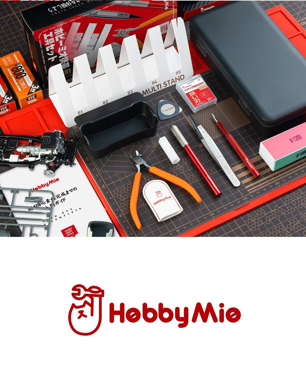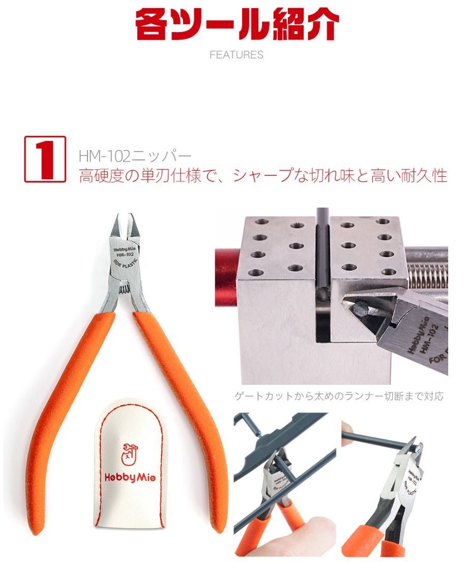 ニッパーやモデラーズナイフ、ピンセットなど、どれもHOBBY MIOが厳選した信頼の品質。