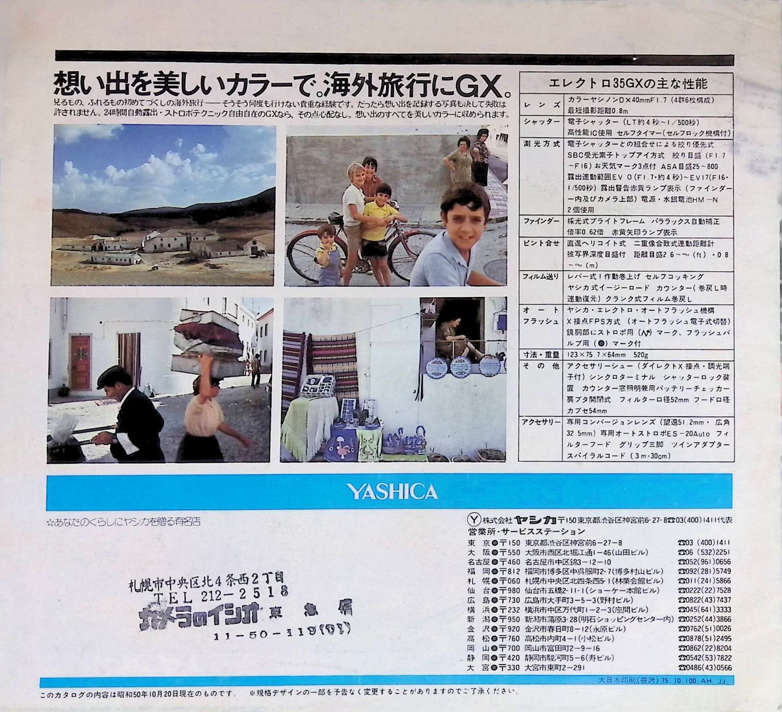 カメラ パンフレット カタログ YASHICA ヤシカ ELECTRO 35 GX ヤシカエレクトロ35GX 昭和50年10月 コンパクトカメラ