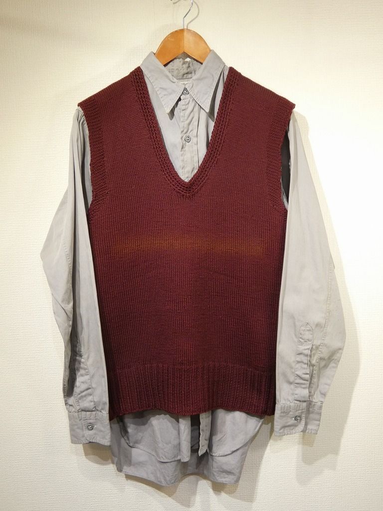 AMERICAN RED CROSS(ARC)は、クララ バートンがスイスのジュネーブで赤十字の存在を知り、1881年に人道援助を目的に設立されされた団体です。そんなこちらは、〜第2次大戦頃のベストで、通常よく見かけるオリーブドラブ(OD)ではなく、バーガンディカラーが特徴の1点です。一説によると当時のレッドクロスのニットアイテムは、多くのチャプターや慈善団体、キリスト系団体などでハンドメイドで制作されて寄付されていたという経緯があり、ミルスペック物と違い規格が統一されていなく、ODやNAVYだけでなくその他のカラーやデザインが存在しています。その中でもこちらのバーガンディは出現頻度も低くレアカラーかと思います。サイズも小さい物が殆どのベストですが、こちらはXL位のサイズ感があり貴重です。変わり物をお探しだった方は是非、ご検討下さい。