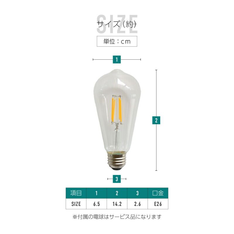 ・電球サイズ(約):高さ14.2cm×幅6.5cm、口金:E26