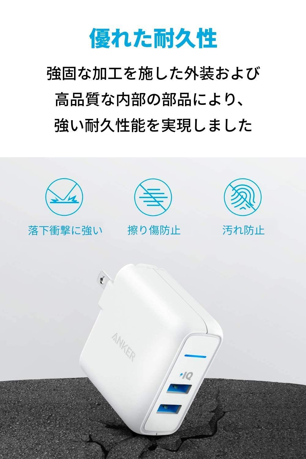 Anker PowerPort 2 Elite (USB充電器 24W 2ポート) 【PSE技術基準適合/PowerIQ搭載/折りたたみ式プラグ搭載/旅行に最適】 iPhone/iPad/Galaxy その他Android各種対応 ACコンセント (ホワイト)