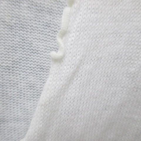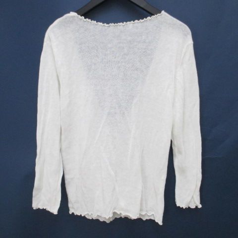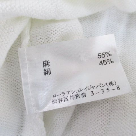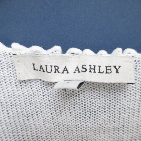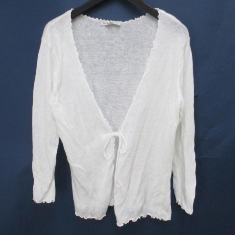 【商品名】ローラアシュレイ LAURA ASHLEY 長袖 カーディガン ニット 麻 リネン L 白系 ホワイト 透け感 リボン 無地