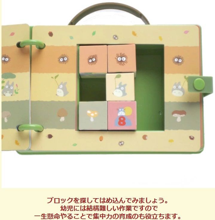 ジブリの人気キャラ、トトロとその仲間たちをテーマにした知育玩具です。