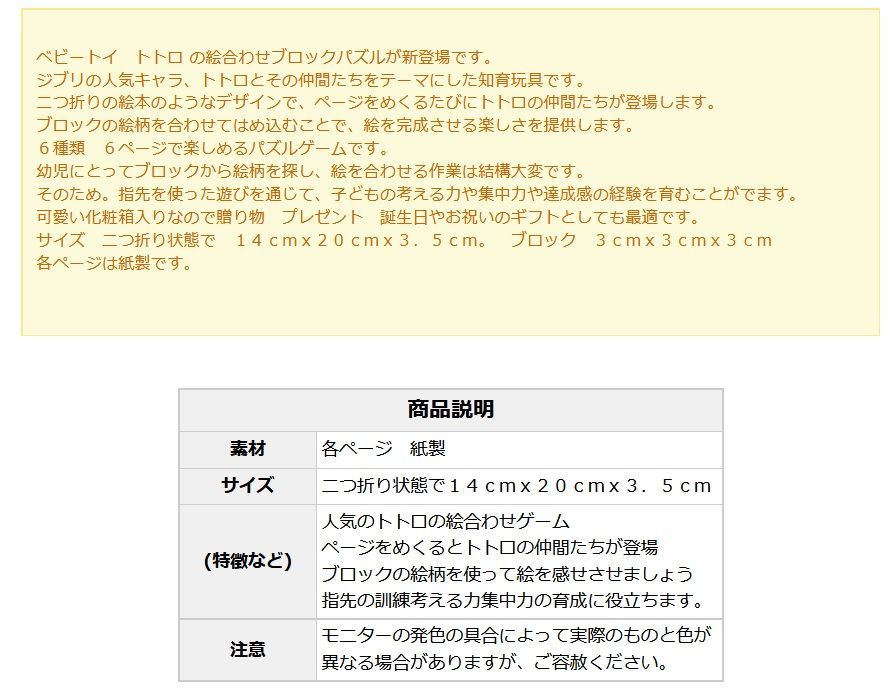 ベビートイ トトロ の絵合わせブロックパズルが新登場です。
