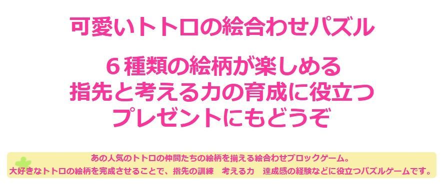 ブロックの絵柄を合わせてはめ込むことで、絵を完成させる楽しさを提供します。