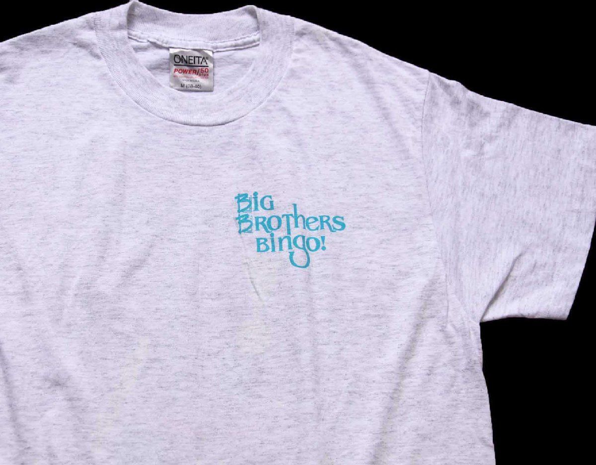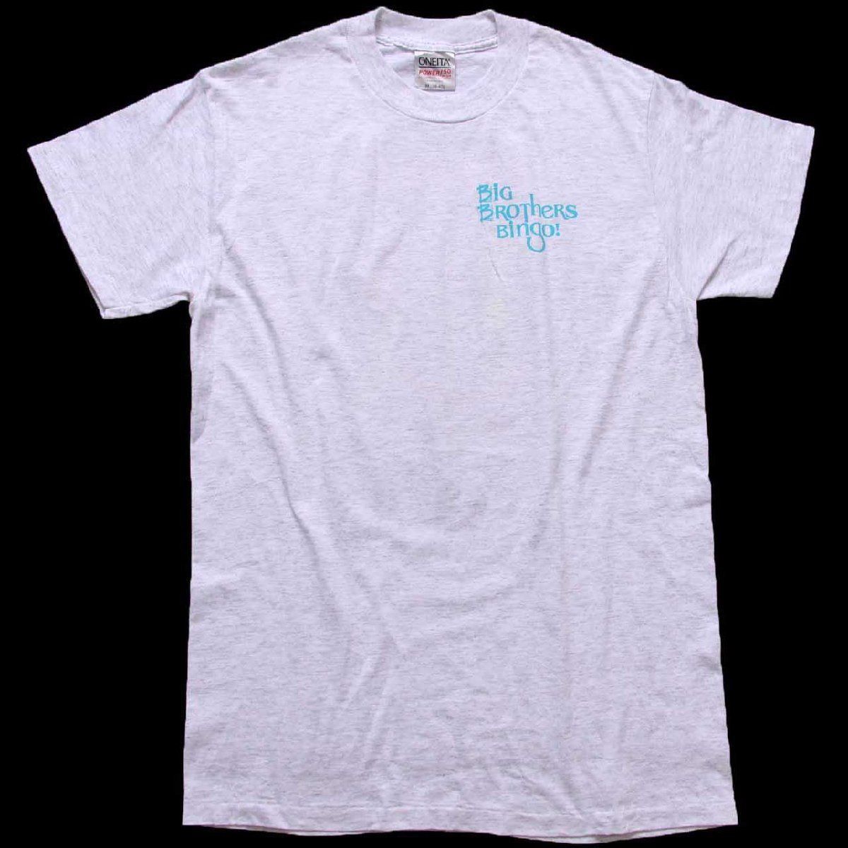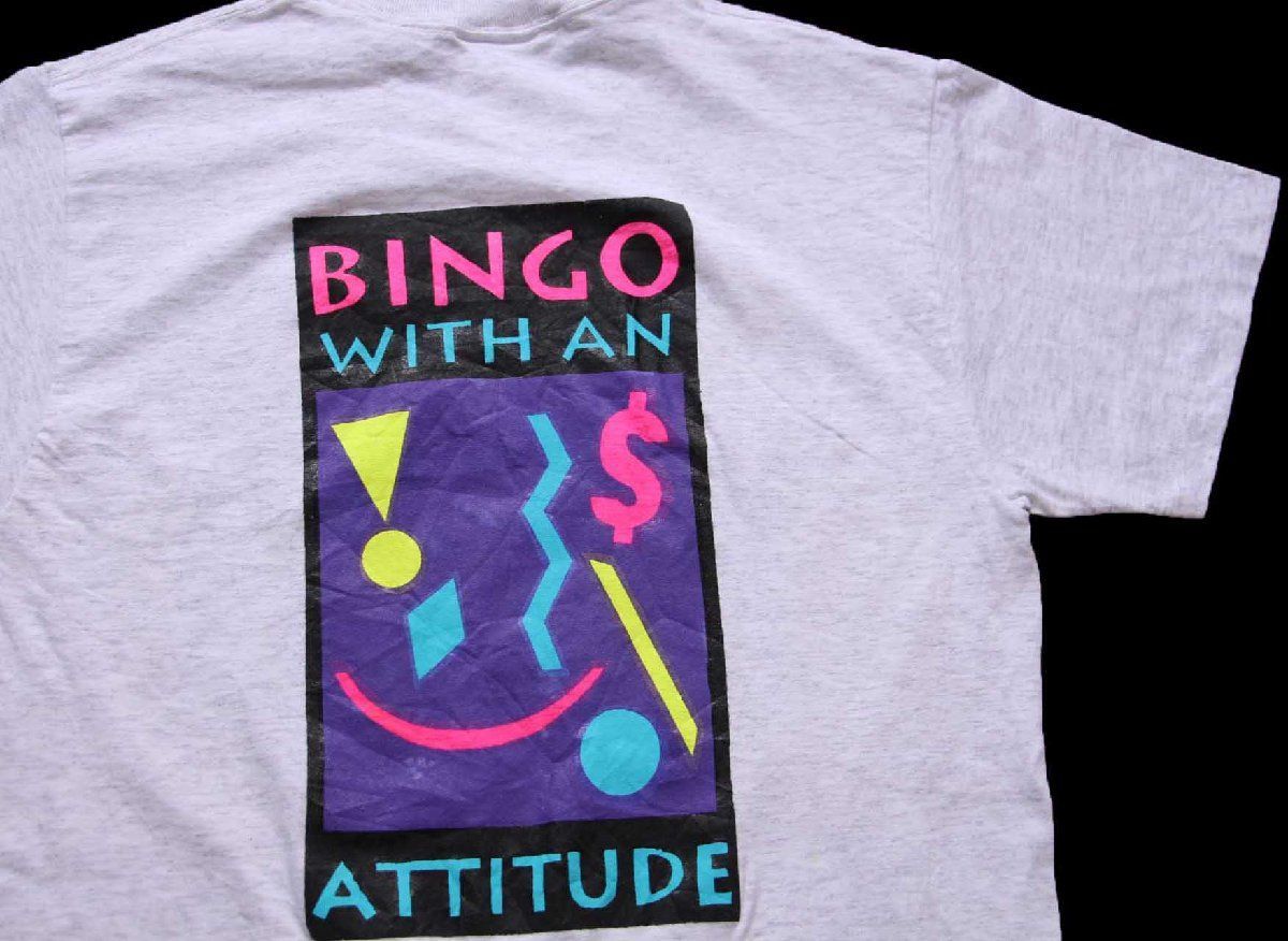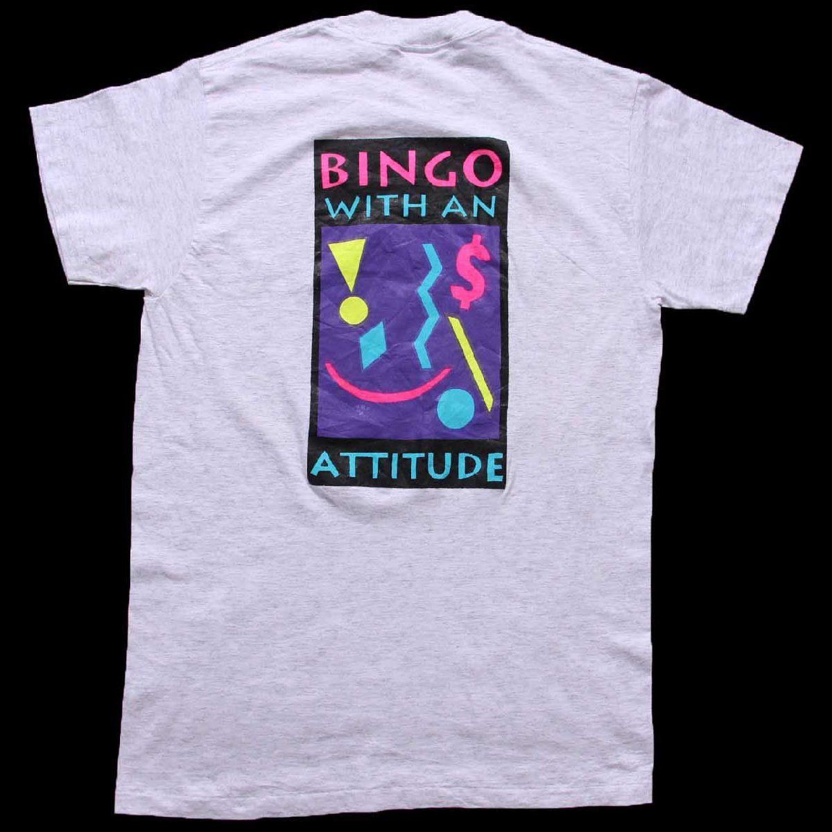 90s USA製 BIG BROTHERS BINGO WITH AN ATTITUDE アート 蛍光プリント Tシャツ 杢ライトグレー M★ビンテージ ネオン ビンゴ