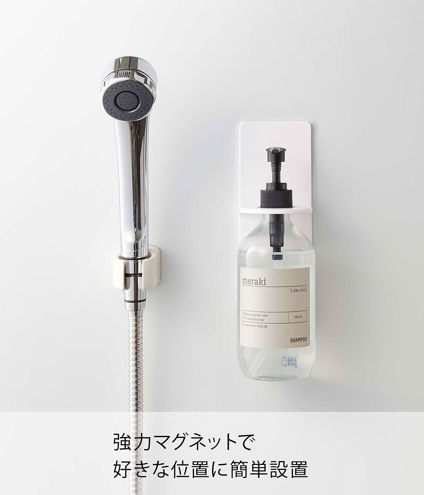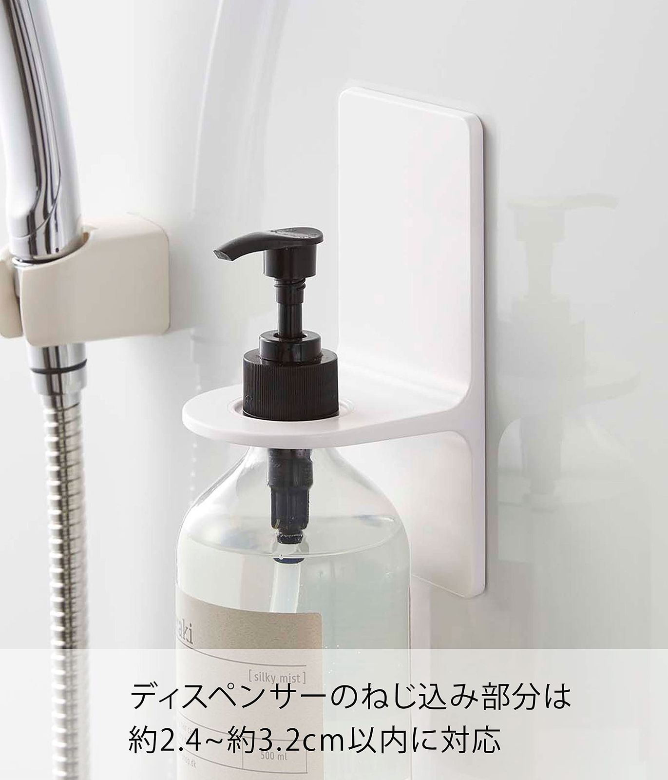 マグネットが付く浴室壁面に簡単取り付けのディスペンサーホルダー。