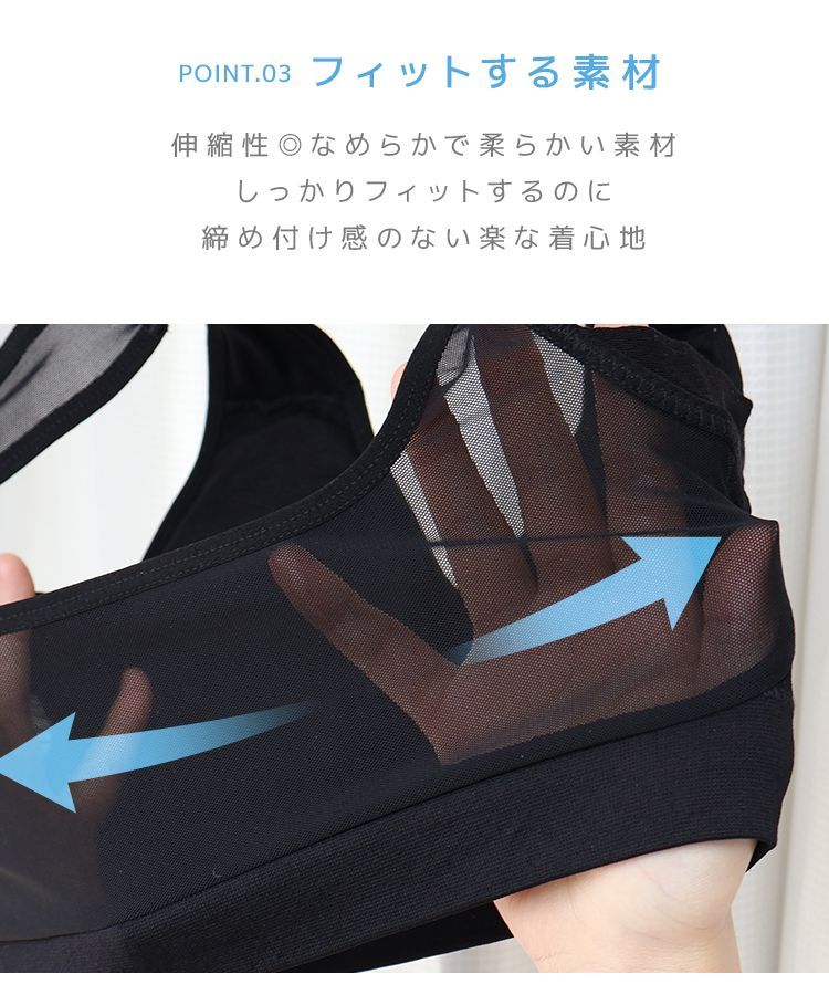肌が蒸れない吸水速乾性に優れたメッシュ素材で通気性UP!