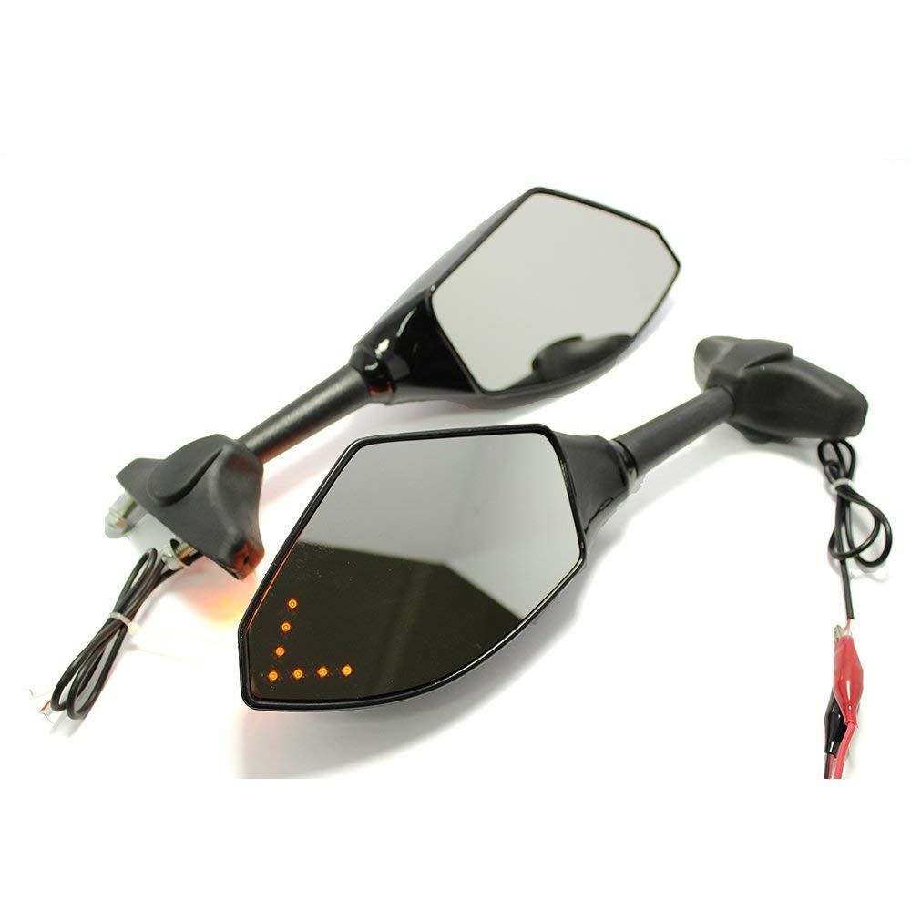 Karun ペアのLEDモーターサイクルターンシグナル統合インジケーターレーシングスポーツ用リアビューミラーCBR 250R 500R 600F for YZF FZ1 for ZX10R 12R (スモーク色)