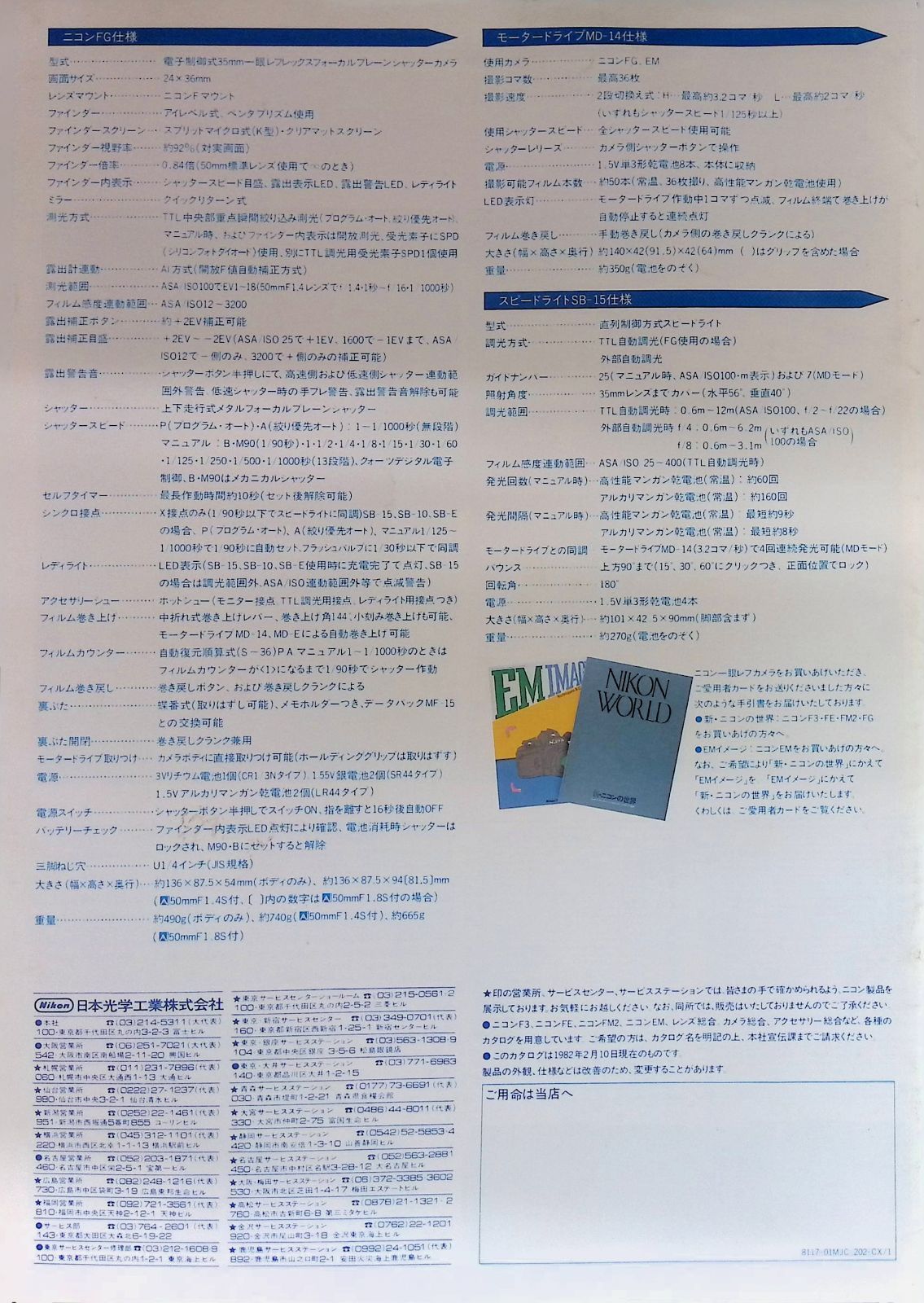 カメラ パンフレット カタログ Nikon ニコン FG Program Nikon 一瞬への反応が加速した 1982年2月 一眼レフ