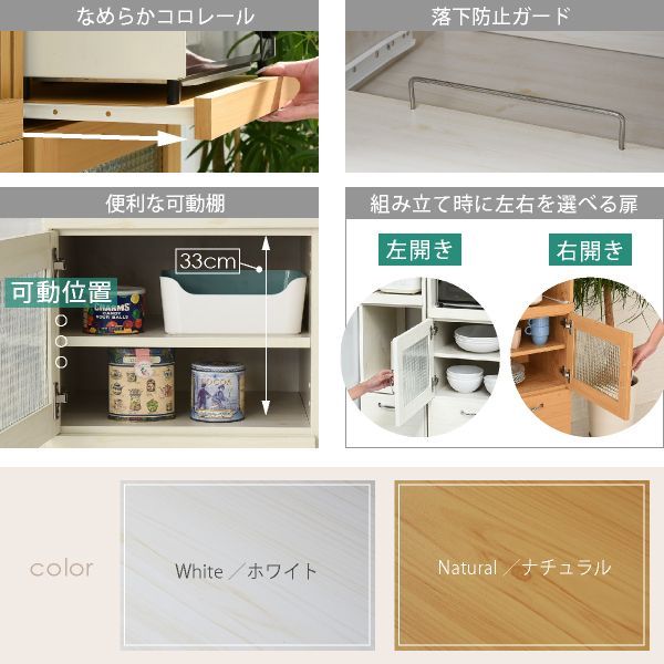 木目調とガラスのカントリーテイストが可愛いリュッカランドのキッチンシリーズ。コンパクトながらも豊富な収納スペースで、レンジや家電も効率よくまとめられます。