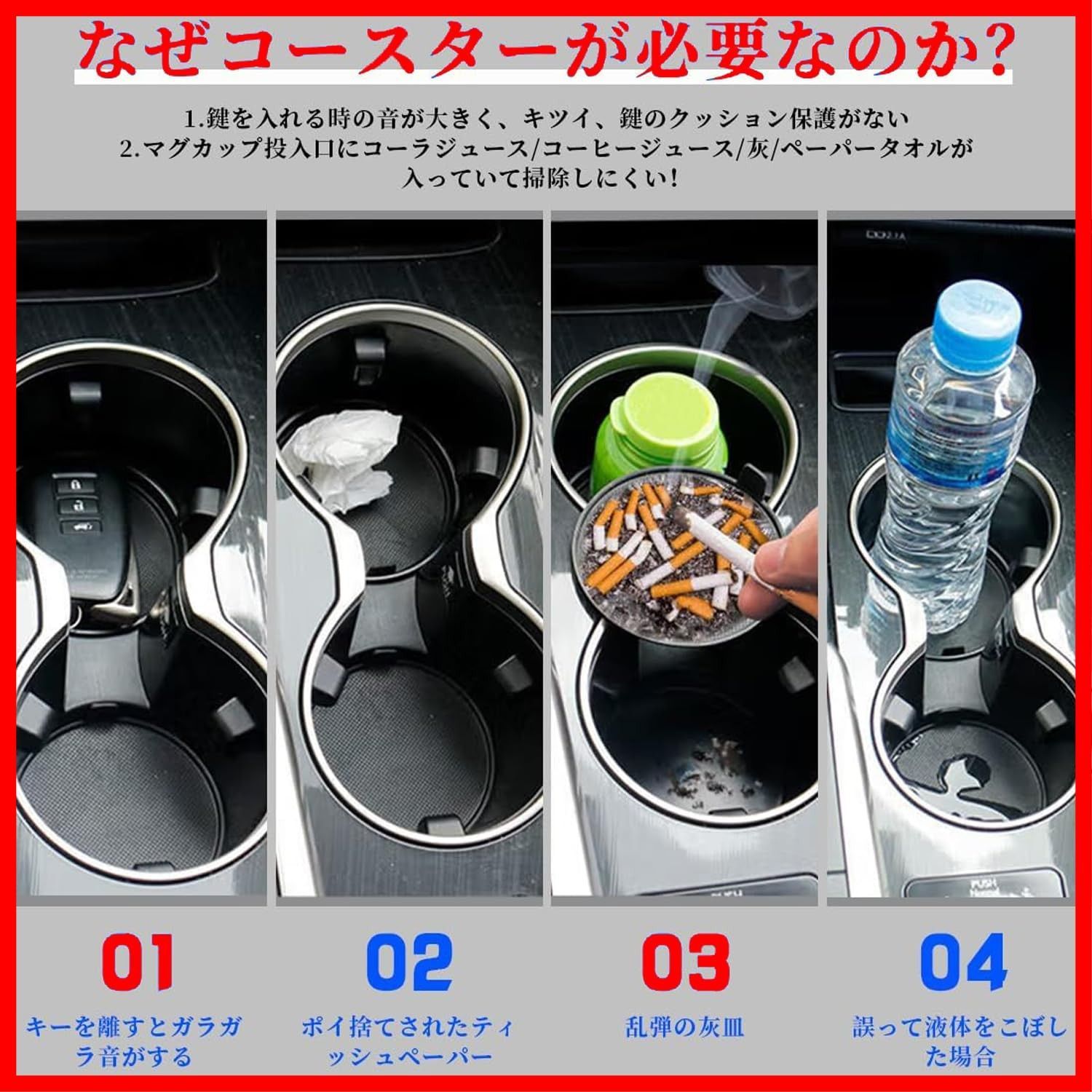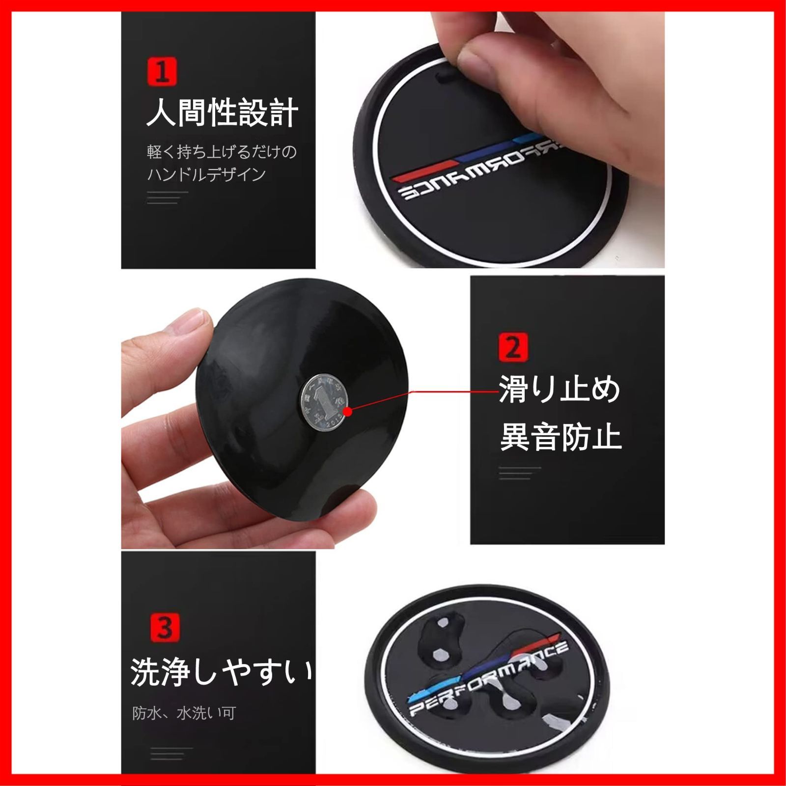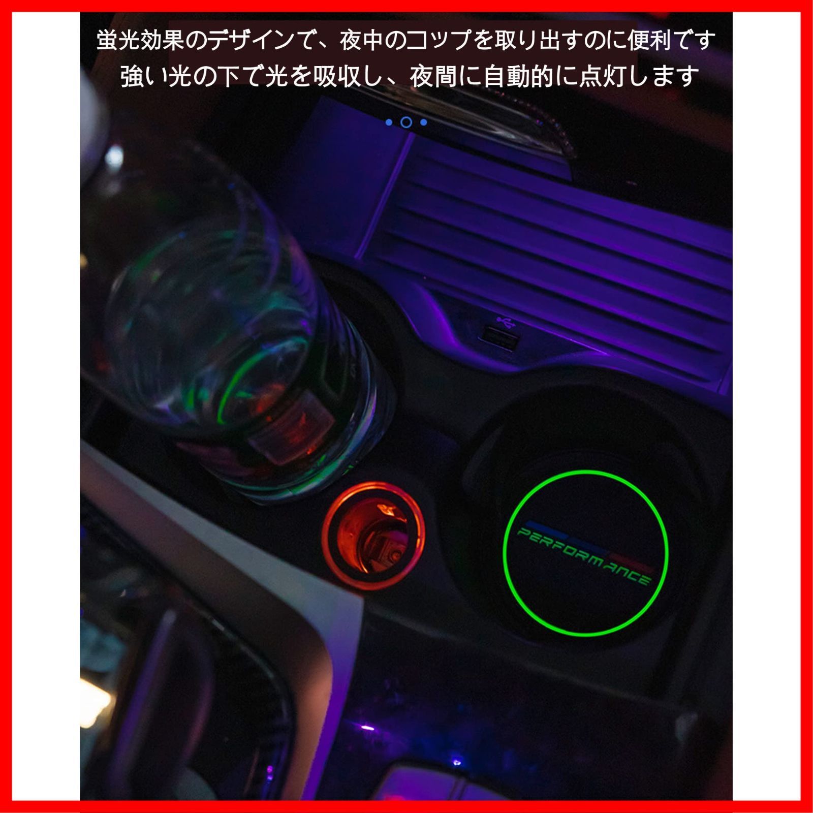 ●【デザイン】専用ロゴで、カスタマイズが好きな車のオーナーにおすすめです。車内の楽しさとスポーティさを高めます。取っ手付きで、カップコースターを持ち上げるのが簡単で便利になっています。発光デザインは強い光の下で光を吸収し、夜間に蛍光効果を生み出します。