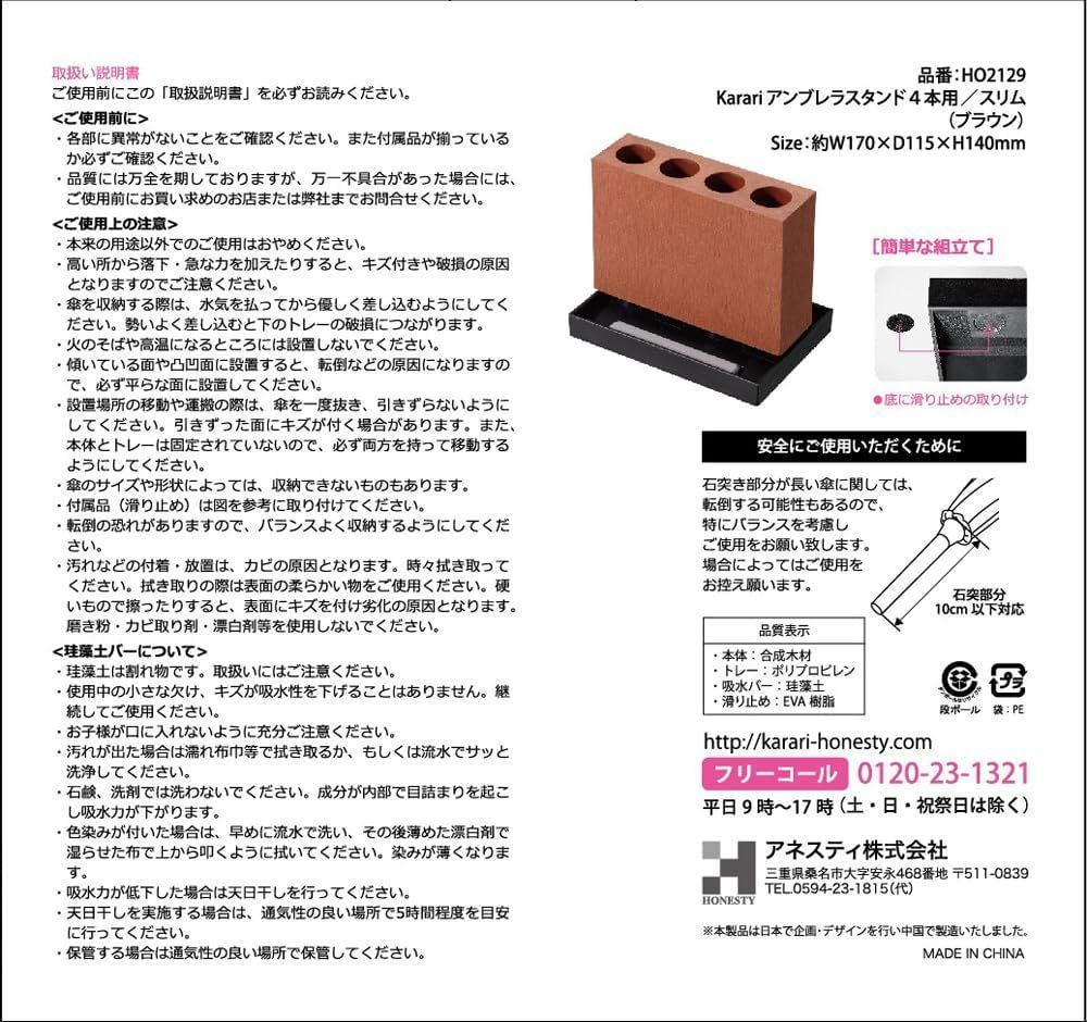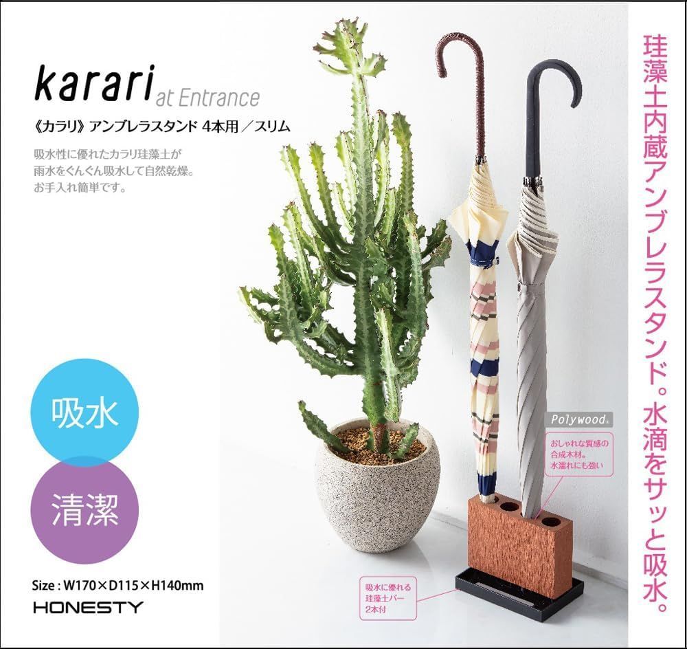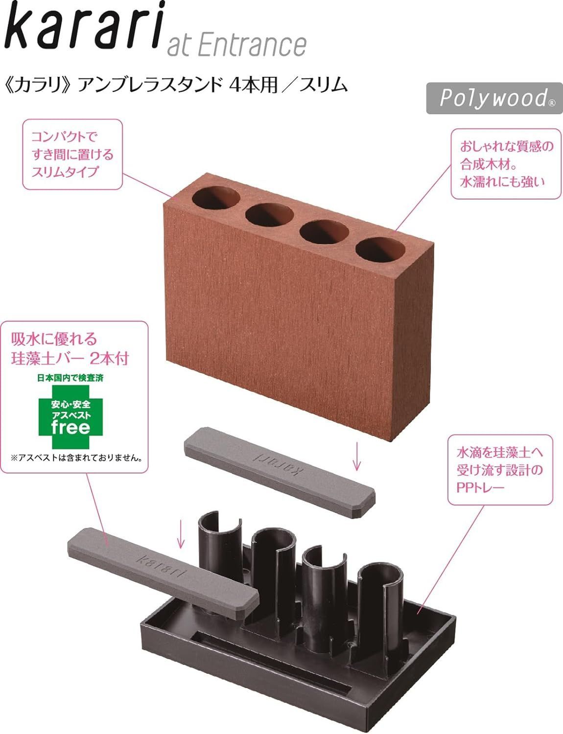 アネスティ 傘立て ブラウン 幅17×奥行11.5×高さ14cm karari 珪藻土 アンブレラスタンド スリム 4本用 吸水 玄関 省スペース 収納 HO2129