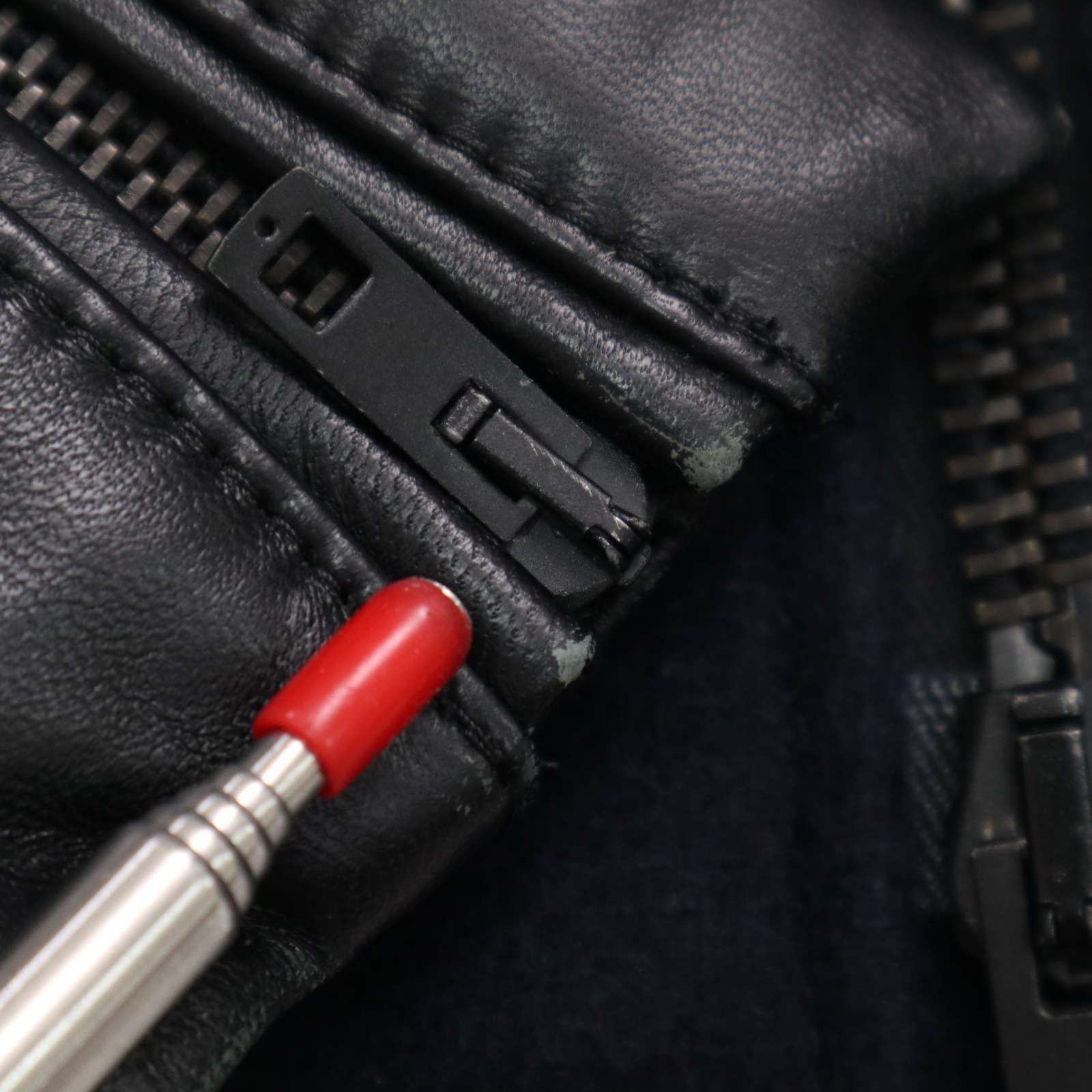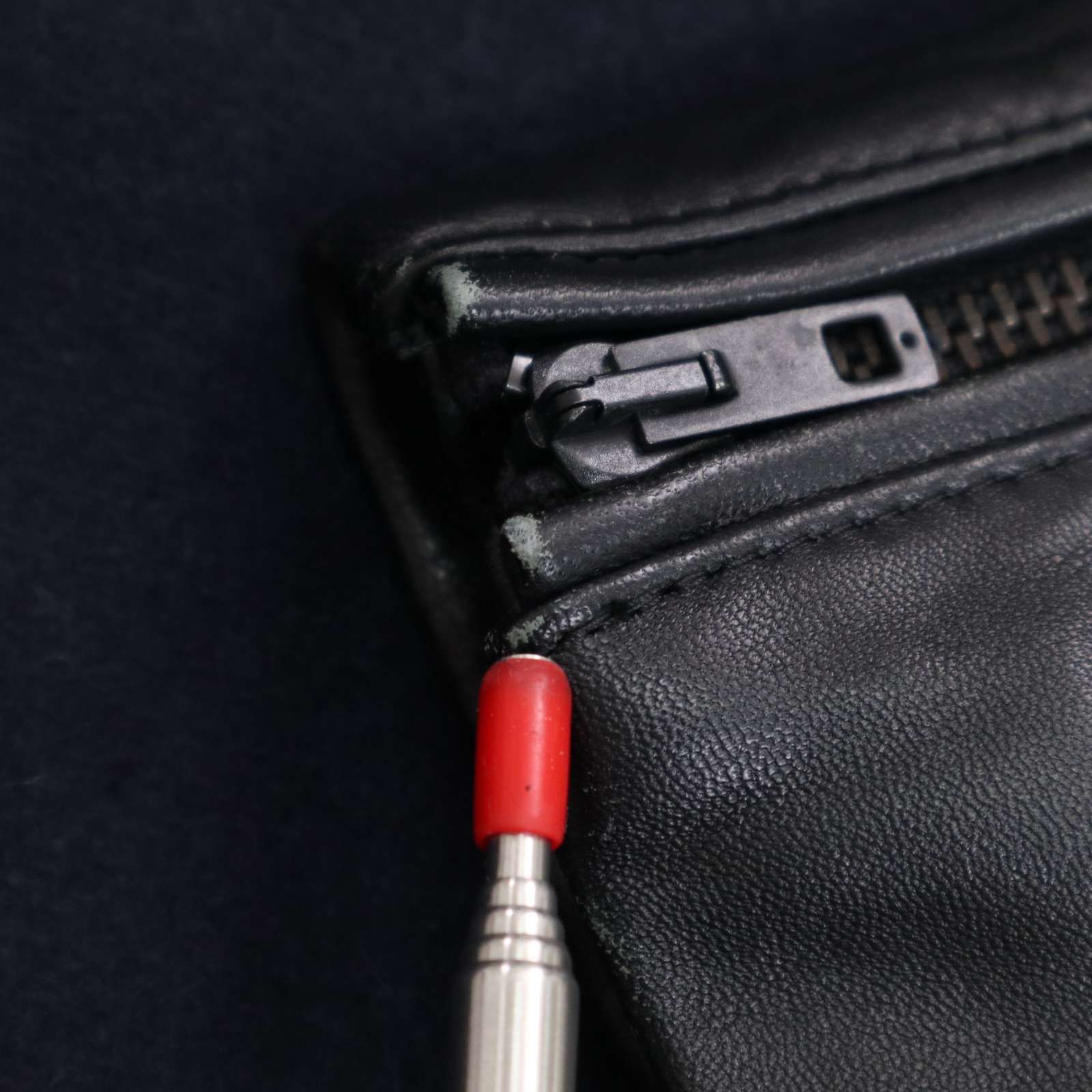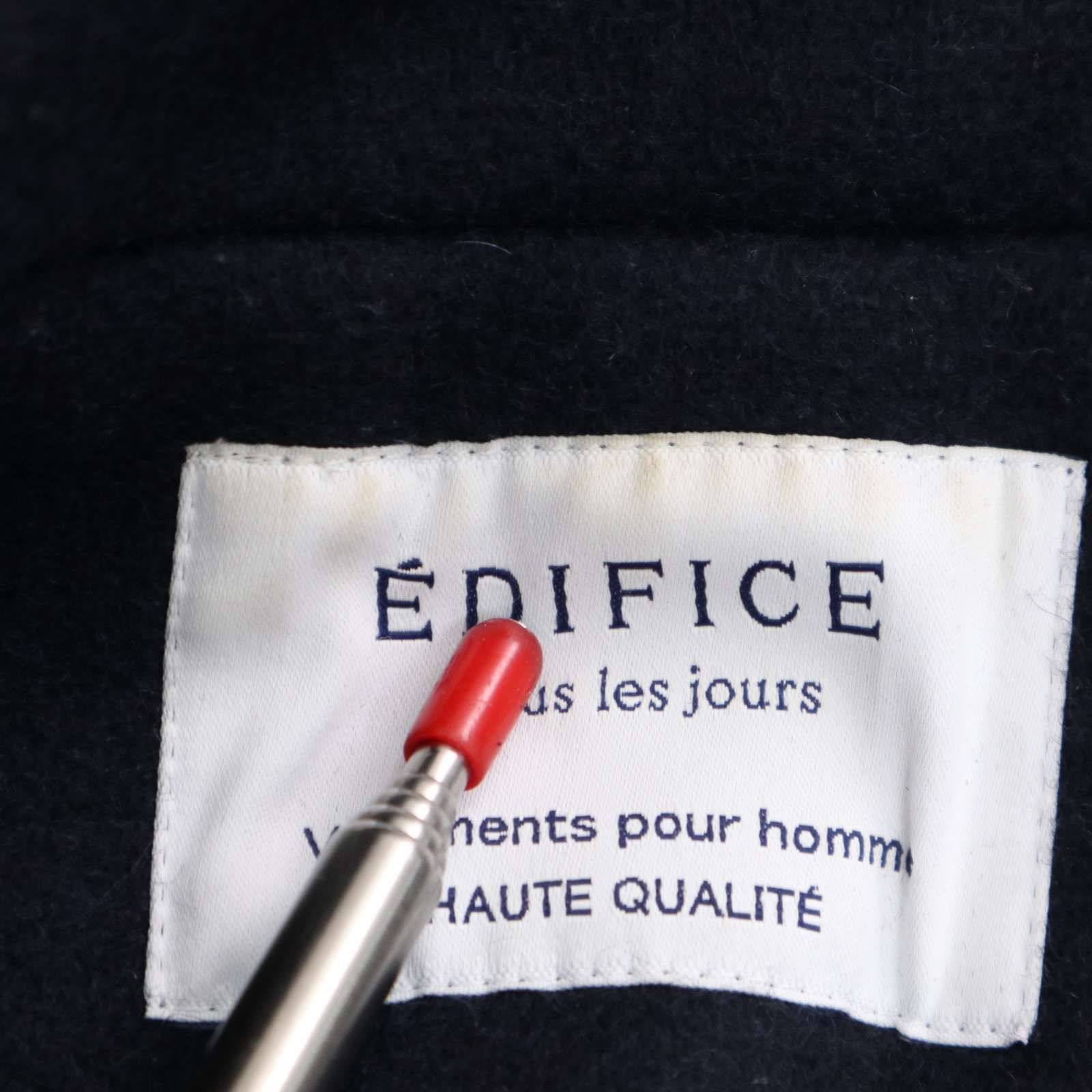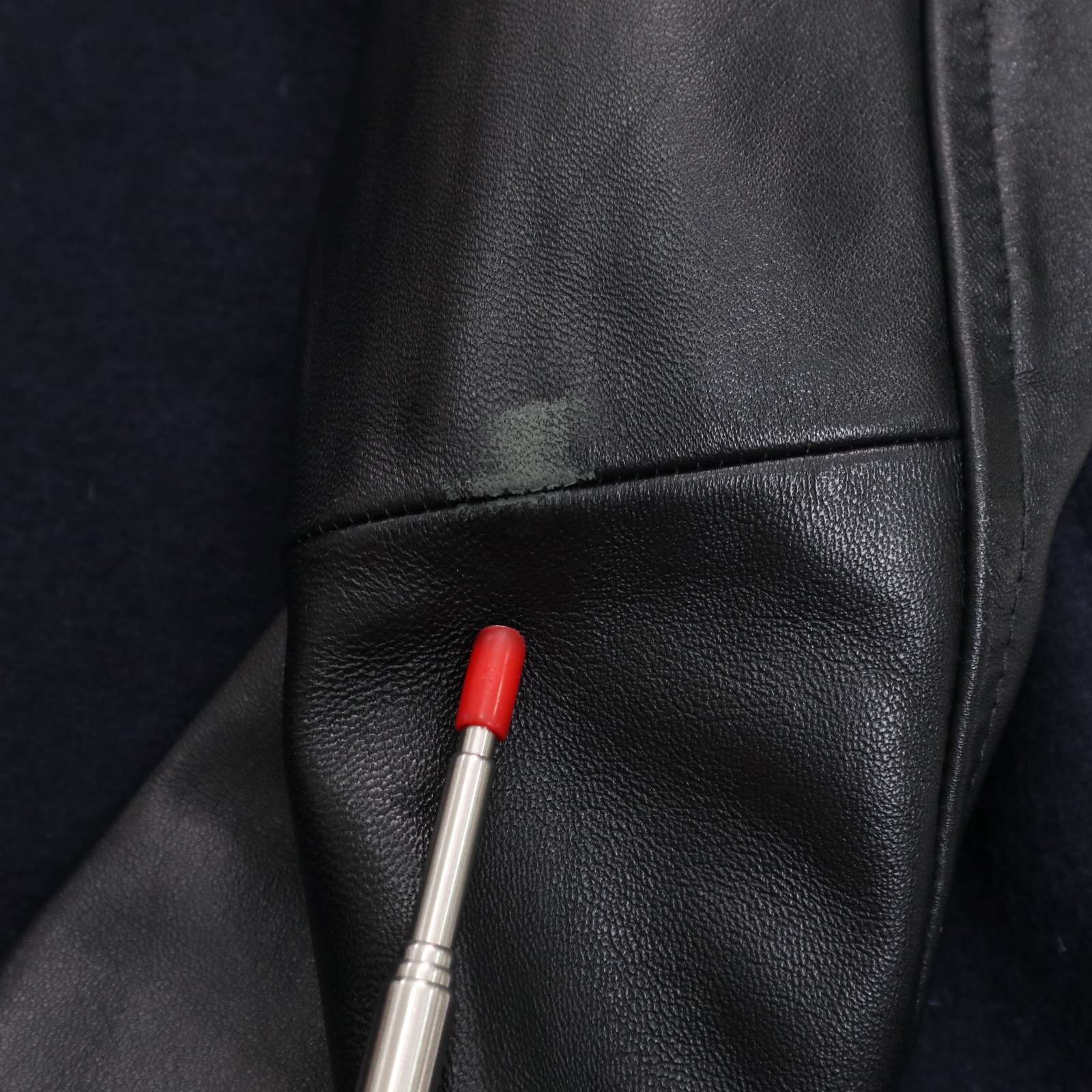 袖先や肘にごくわずかなスレとブランドタグにごく薄い汚れがございます。他に目立った汚れ等なく着用に問題はございません。