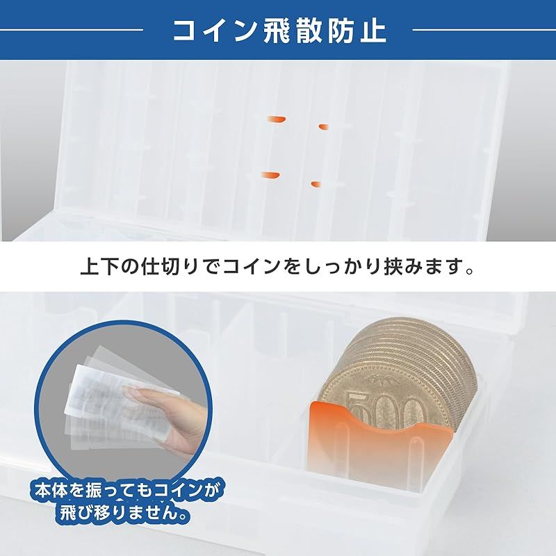 硬貨収納枚数:500円(25枚)・100円(60枚)・50円(30枚)・10円(30枚)・5円/1円(計30枚)