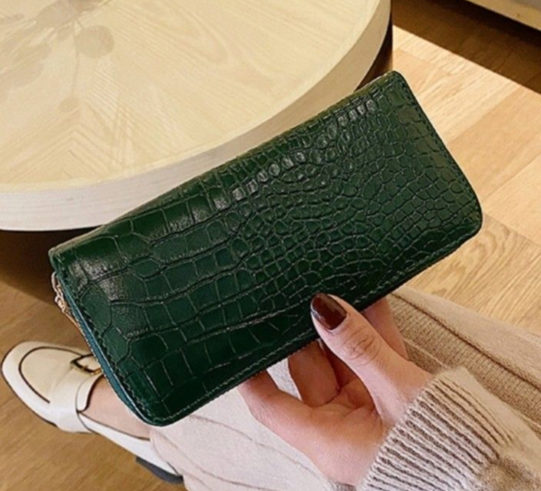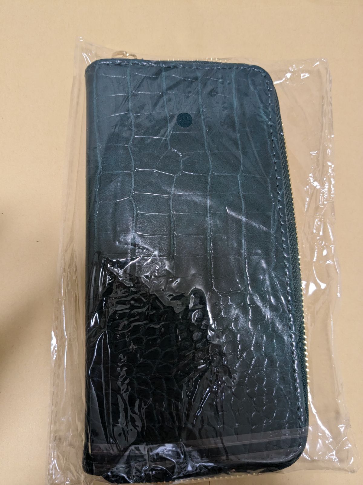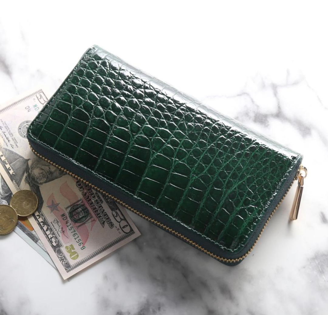 クロコダイル 長財布 グリーン 型押し ロングウォレット ラウンド型 メンズ レディース