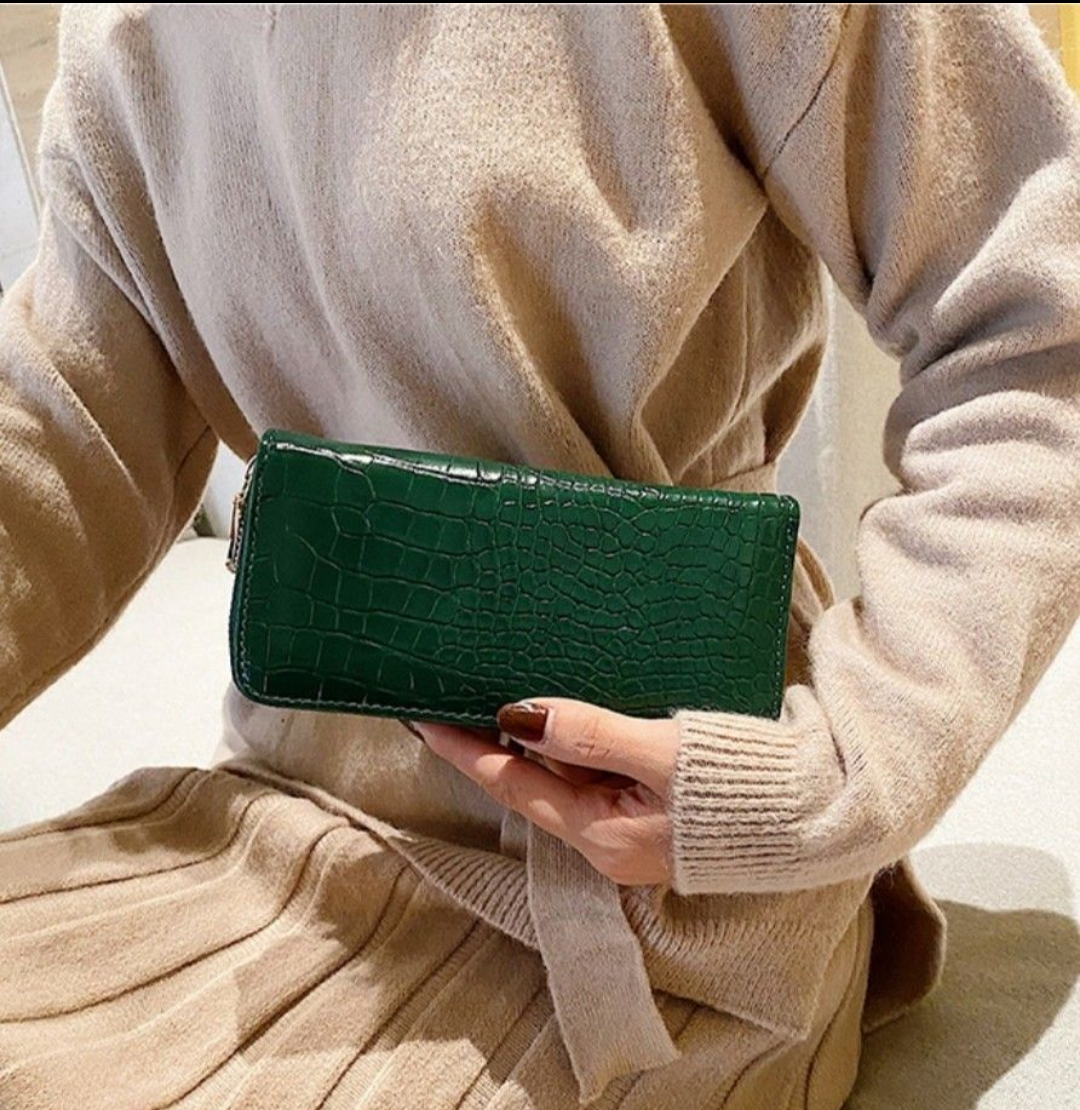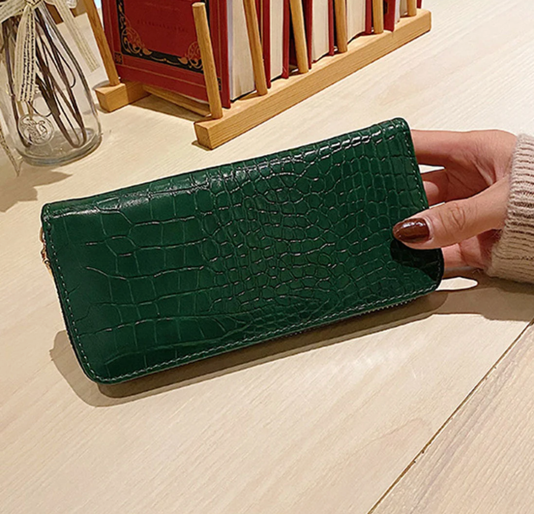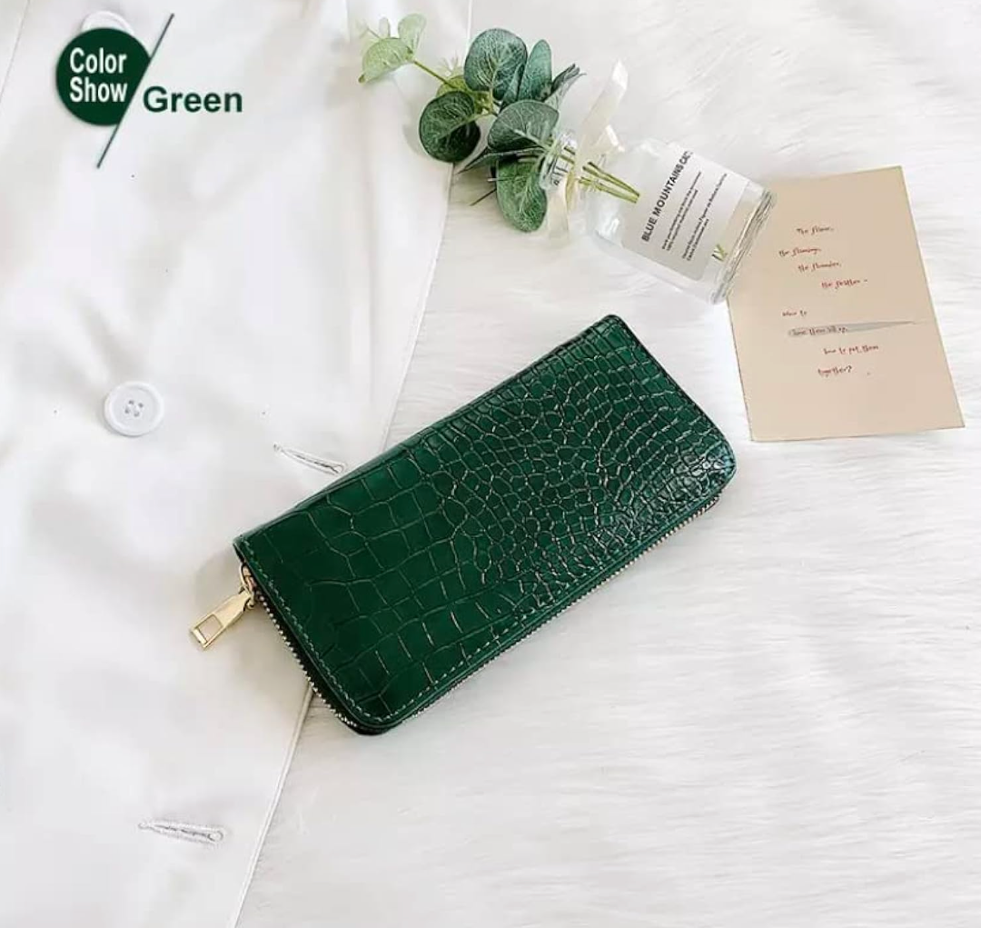 クロコダイル 長財布 グリーン 型押し ロングウォレット ラウンド型 メンズ レディース