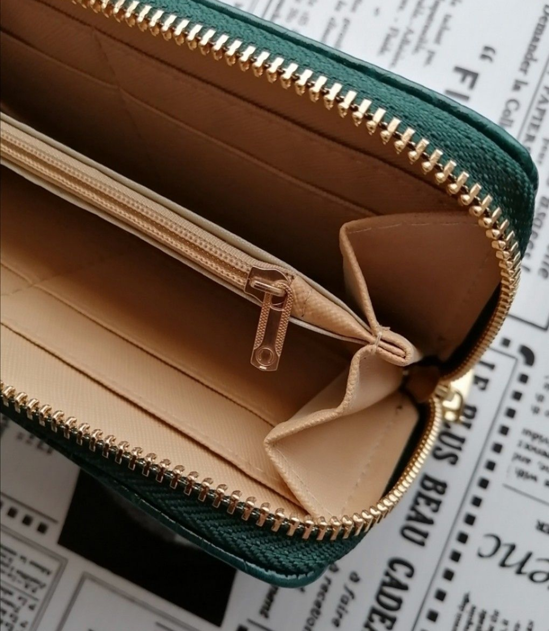 ラウンド型で中身を大きく広げられるので小銭もカードも良く入ります。スマホも入ります(^^)