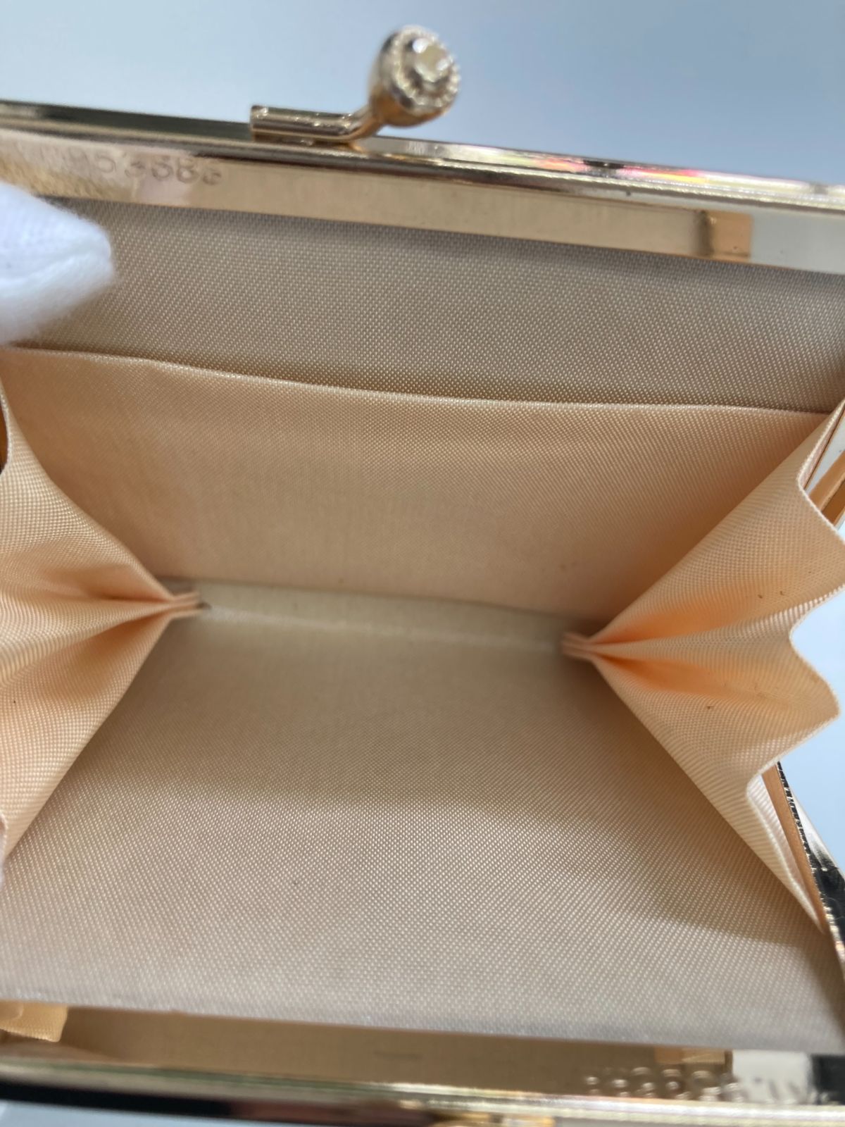 ポーチの金メッキの留め金の部分に黒ずみが見受けられます。(6枚目画像)