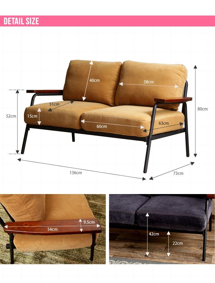 コーデュロイ素材が素敵な2人掛けソファです☆