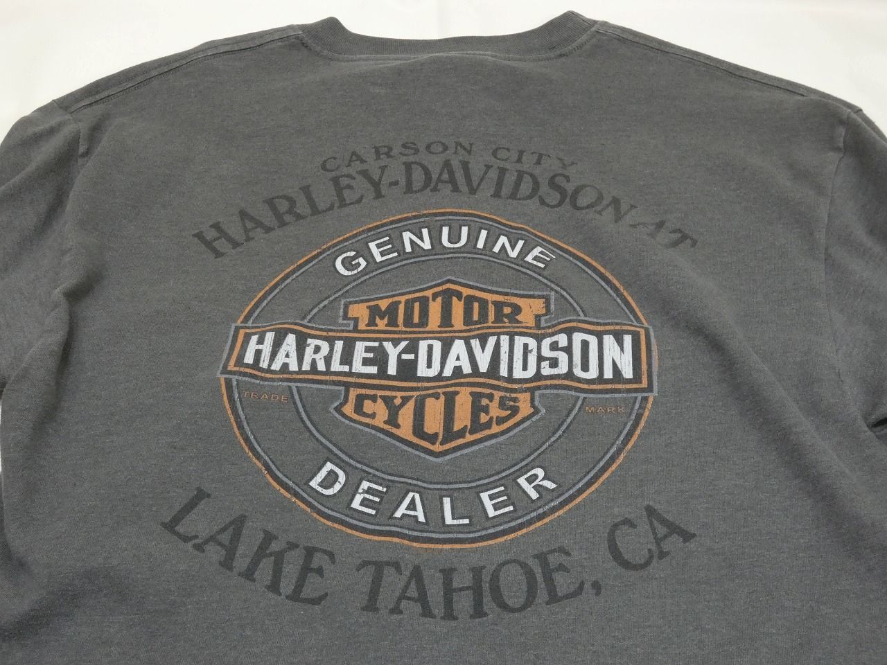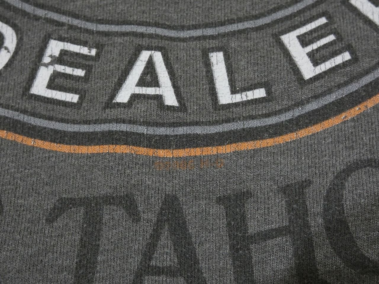 お好きの方も多いハーレーロンTで、その中でも人気のフレーム(炎)袖プリントの1枚です。袖のフレーム以外もバランスの良いグッドプリントで、ブラックがフェードした様なチャコールグレーボディ(Hanes製)もクールです。すべてのプリントには、2006年のコピーライトも入ります。海外著名人が着用した事で人気に火が付いた袖プリロンTは世界中で価格が高騰しています。お探しだった方は是非、ご検討下さい。