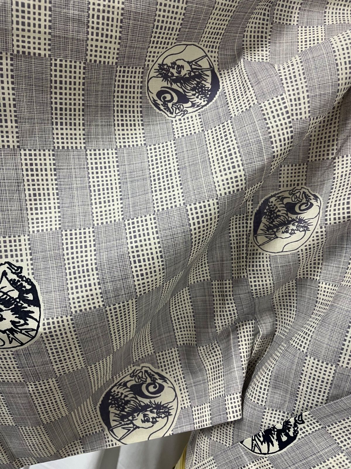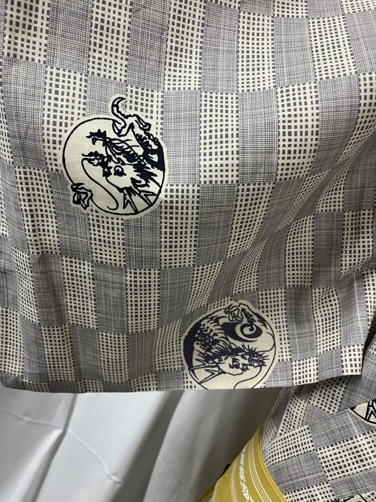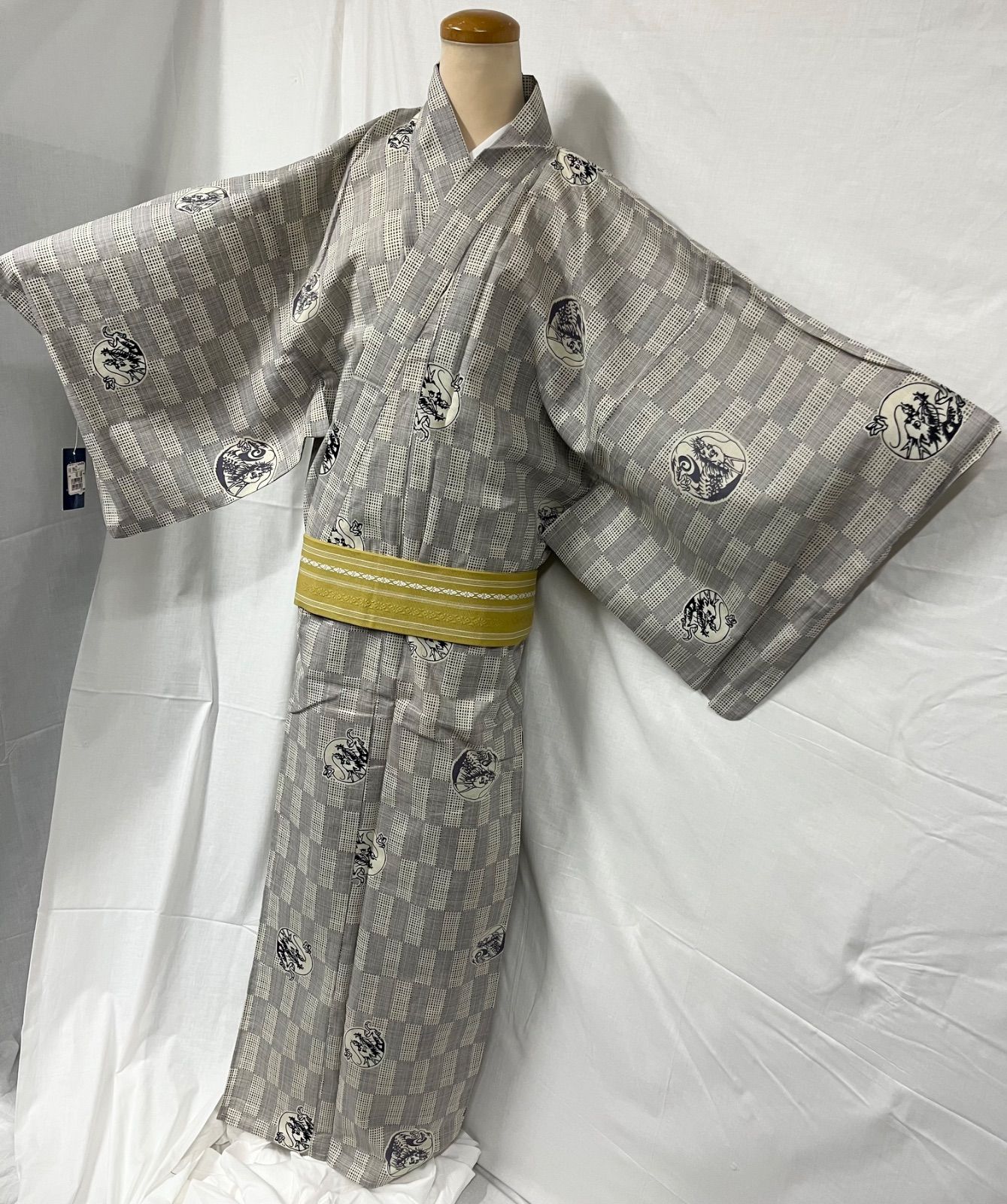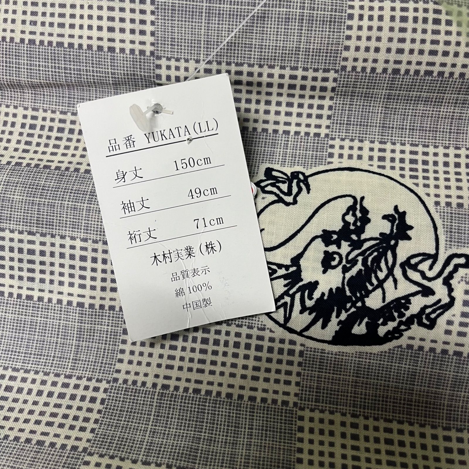 新品未使用 匿名配送 浴衣 メンズ グレー 市松模様 龍文様 総柄 模様 LL サイズ