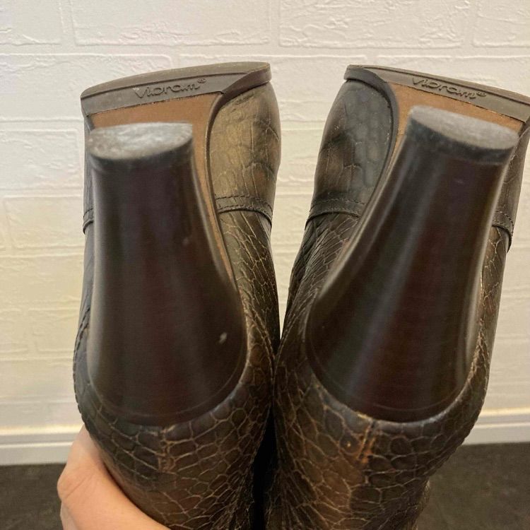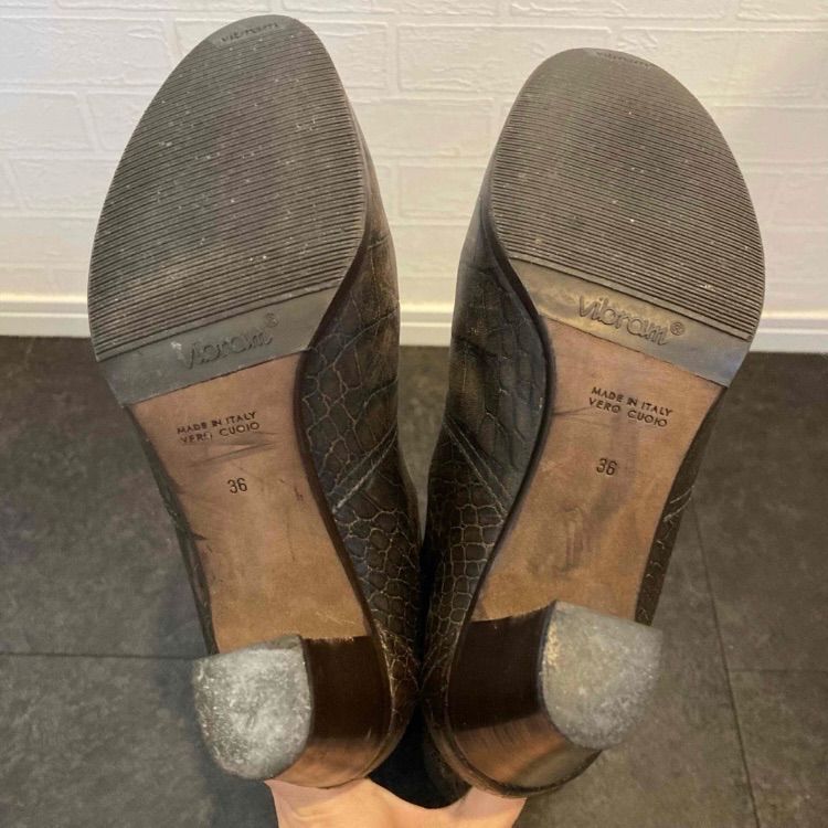 すり減りなどあまりみられないものの、つま先のところを始め全体的に使用感は若干見られます。まだまだ問題なくご着用いただけますが、写真でよくご確認ください。