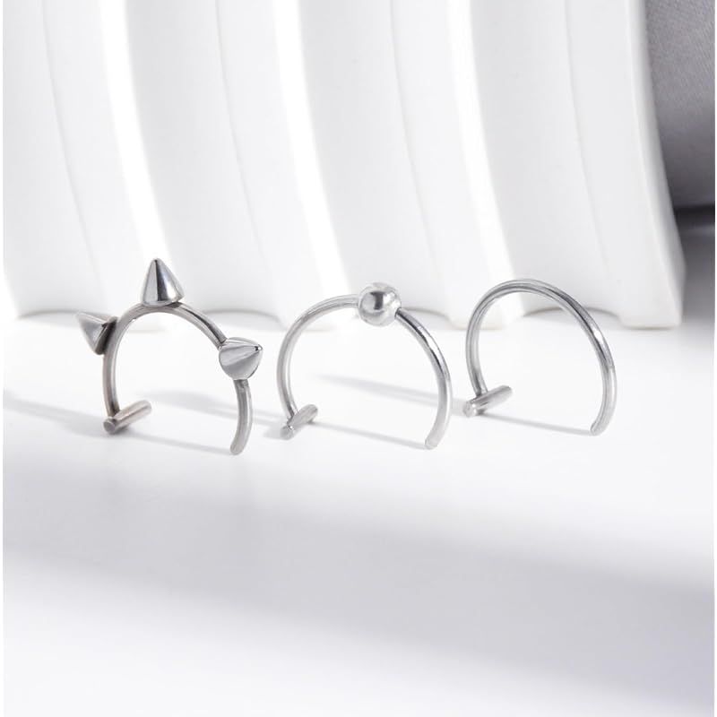 商品名:[Seiunn] リップピアス リング 口ピアス フェイク 【6個セット】 唇リング フェイクピアス 鼻ピアス ピアス穴不要 レディース メンズ C型 ステンレス シルバー