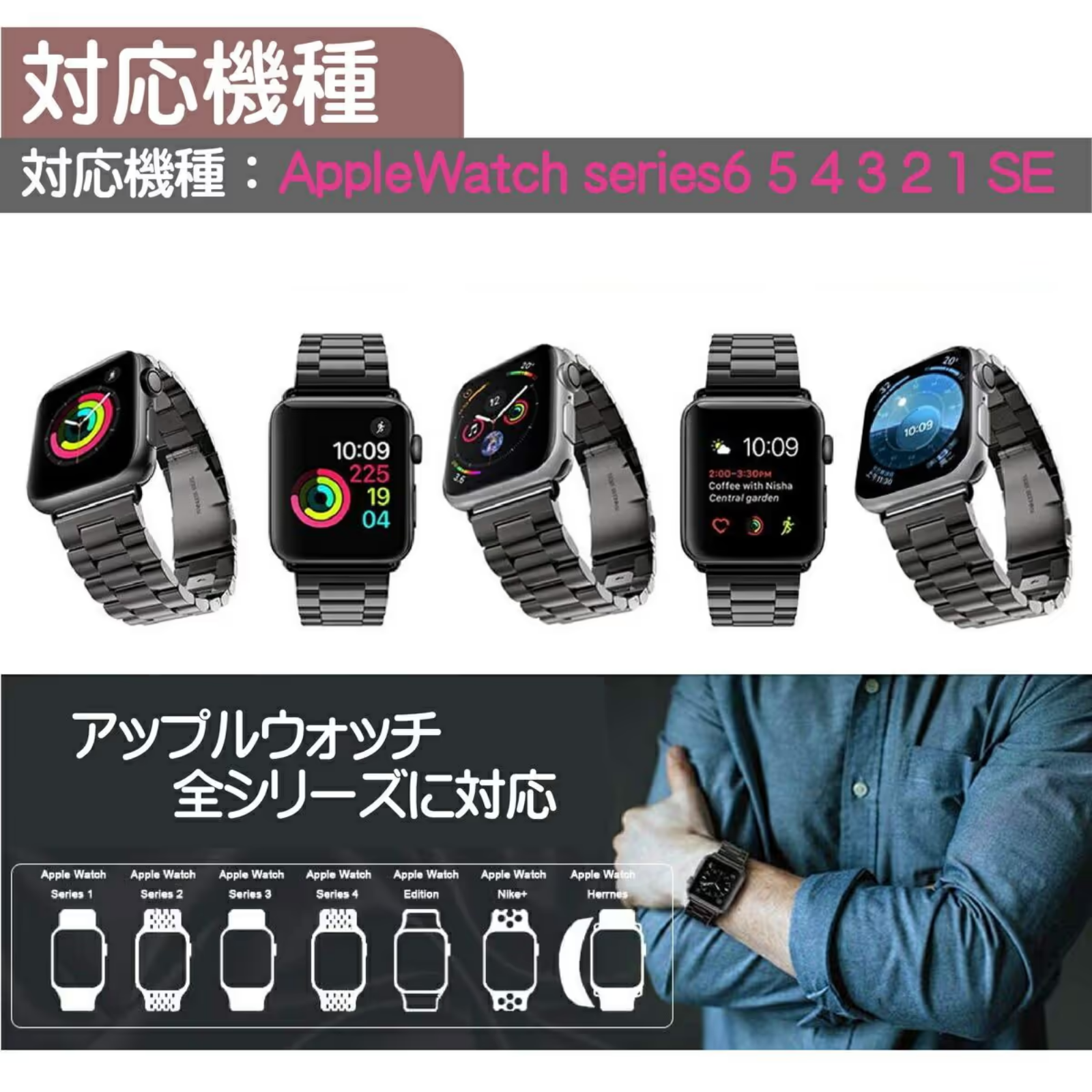 ビジネスからプライベートまで幅広く活躍する高級感のある アップルウォッチバンド(ベルト)です、金属ベルト独特の重たい感じがなく、非常に着け心地の良いベルトです。