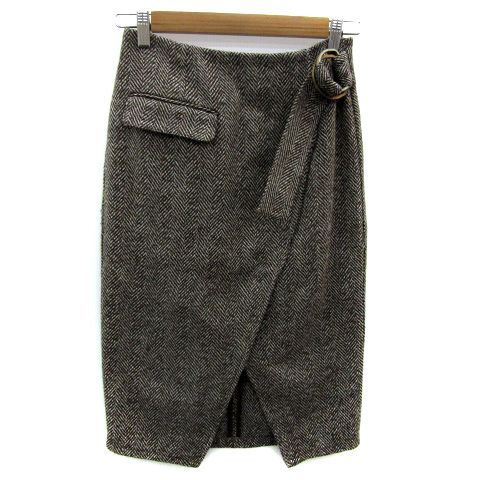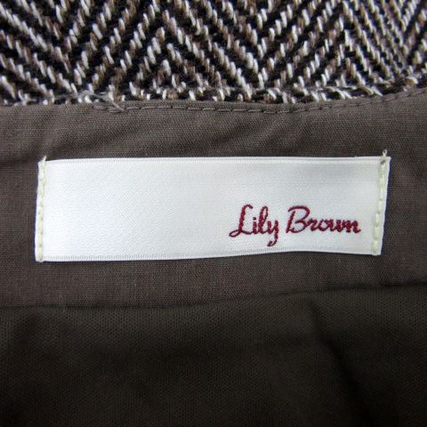 【商品名】リリーブラウン Lily Brown タイトスカート ミモレ丈 スリット ベルト付き ヘリンボーン柄 0 茶 ブラウン /MA9