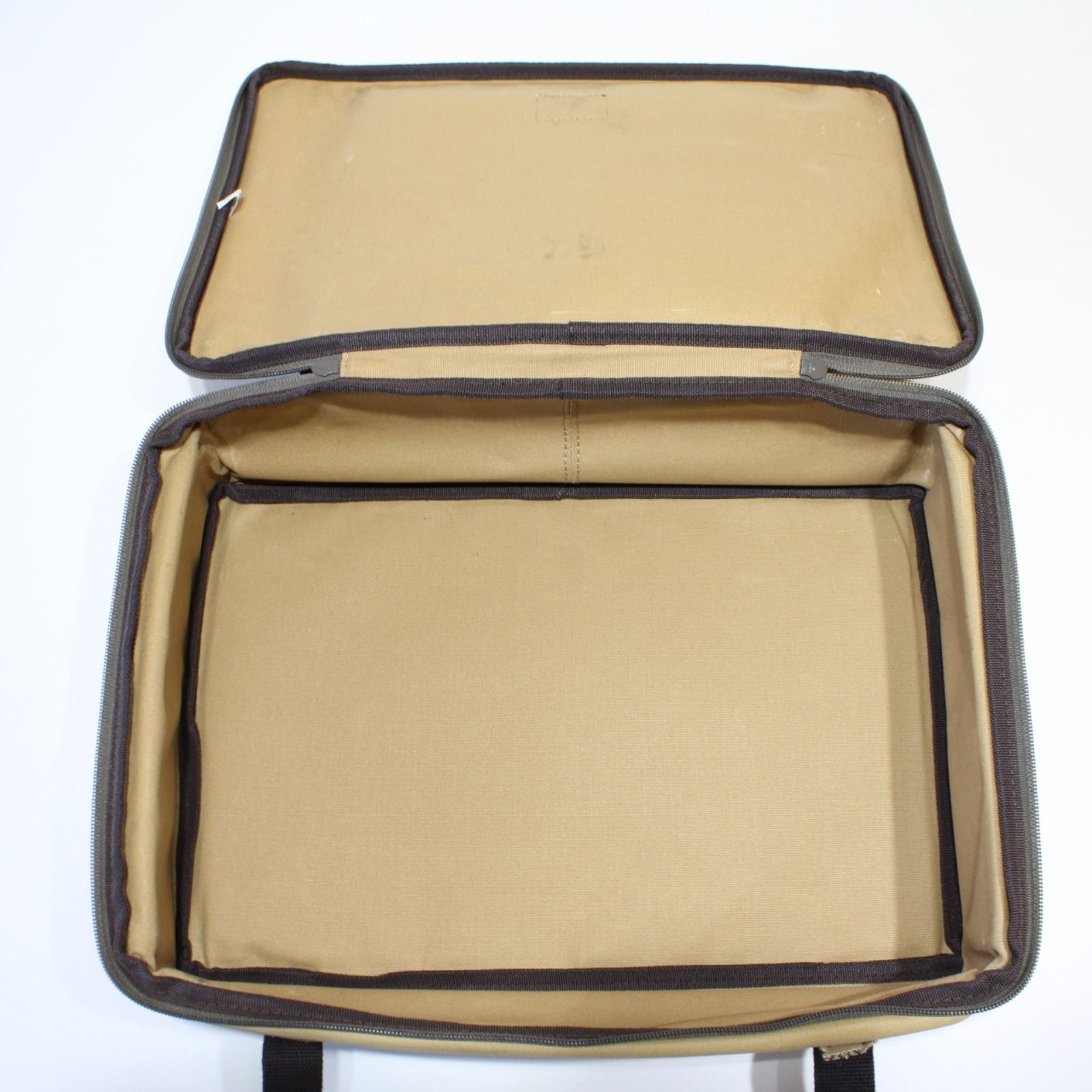 本体下部の縁に5ミリ程度、1センチ程度の二か所の破れがございます。二重生地の外生地のみの破れで、貫通はしておりません。