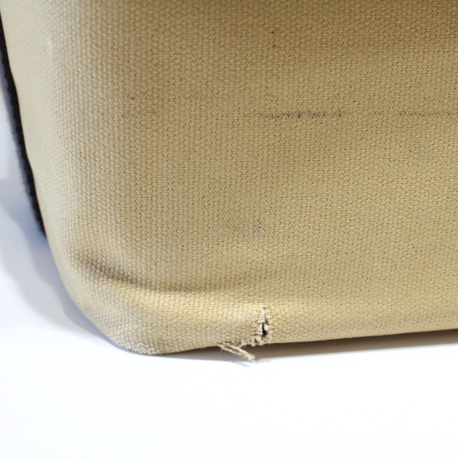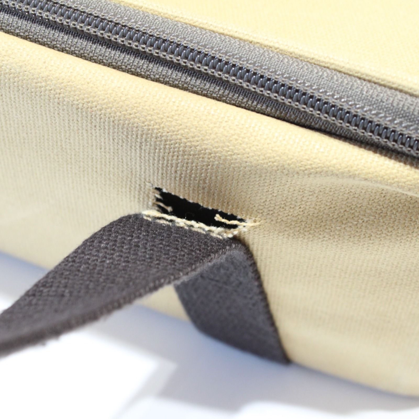 持ち手の付け根部分の生地に3センチ程度の破れがございます。
