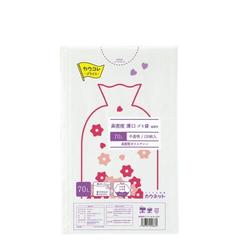高密度薄口ゴミ袋 詰替用 70L 120枚4216-4326【カウネット】