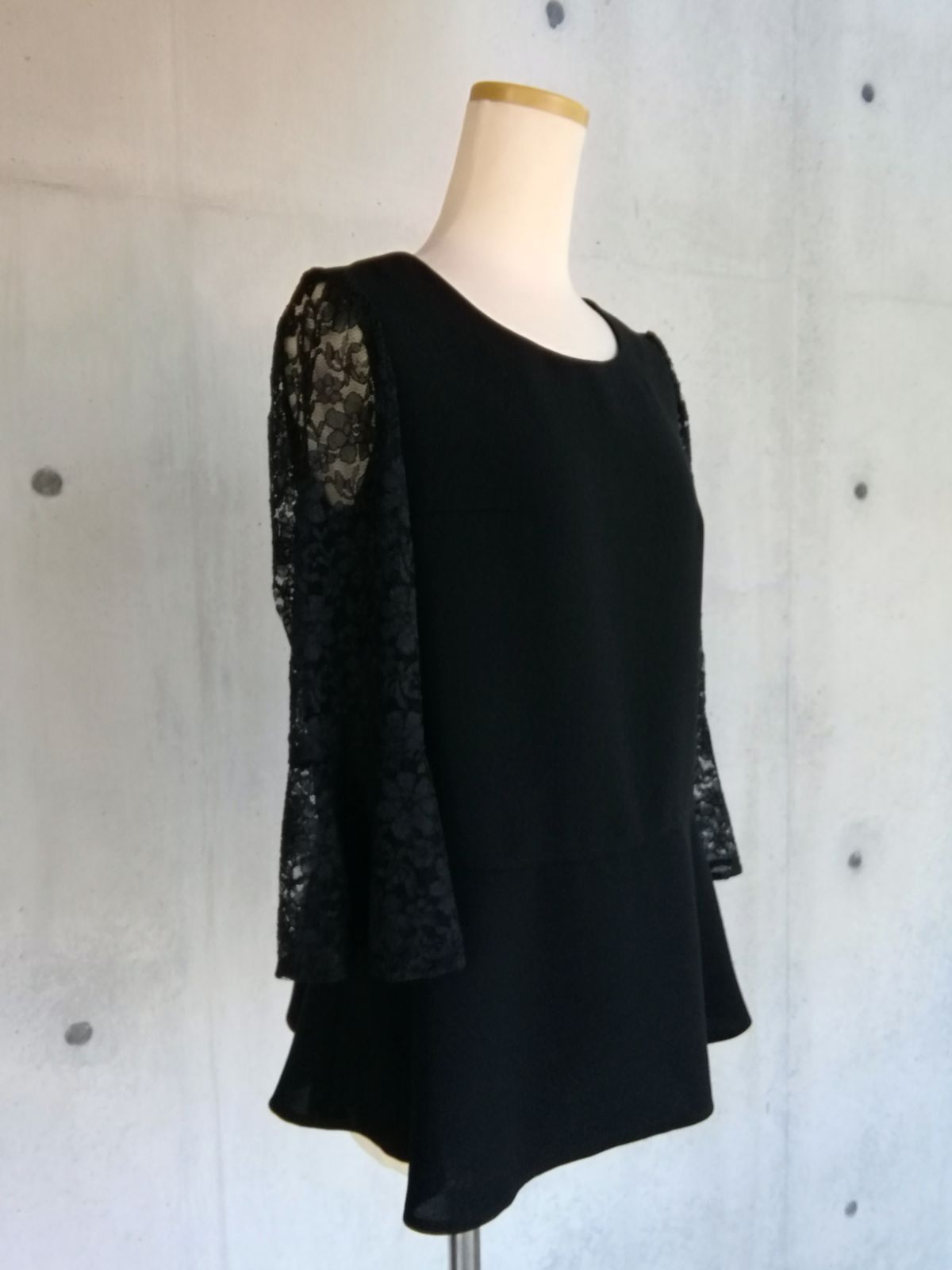 夏の人気、喪服にも使えるフォーマル袖レース使いのブラウスに新作のロングタイトスカートが付いたブラウススカートスーツです。