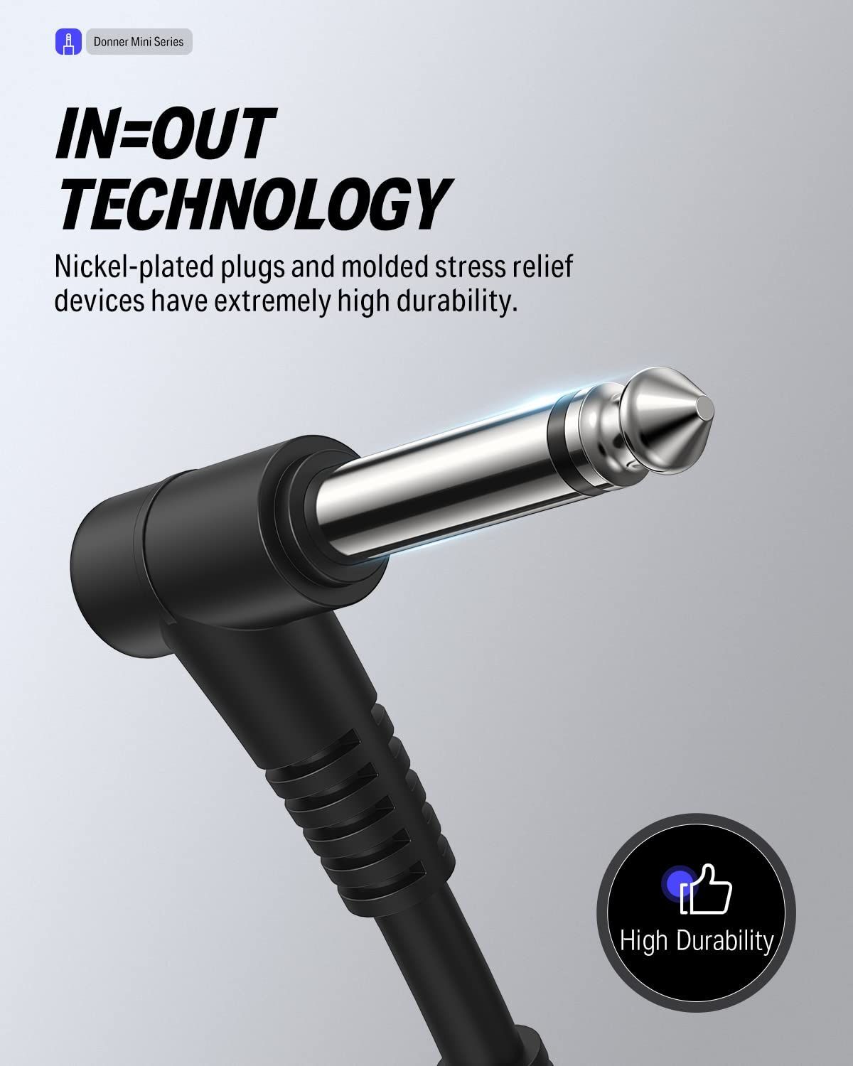 【1/4 TS プラグ】 2 つの大きなコア オーディオ プラグ、In=Out テクノロジー、モールド TS 1/4 プラグはペダル ボードに最適です。