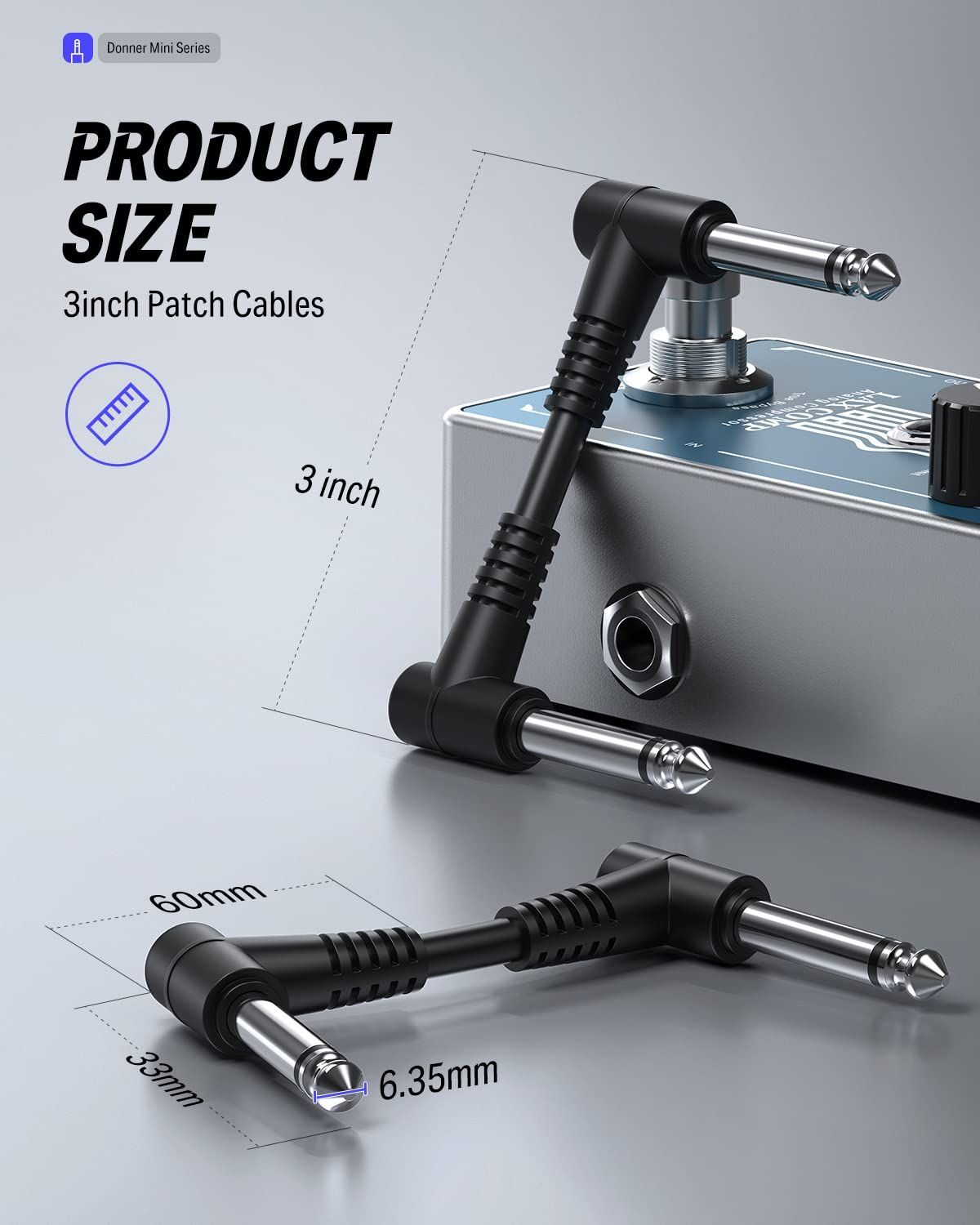Donner 7.5cm パッチケーブル ギターエフェクター用 ブラック (6本)