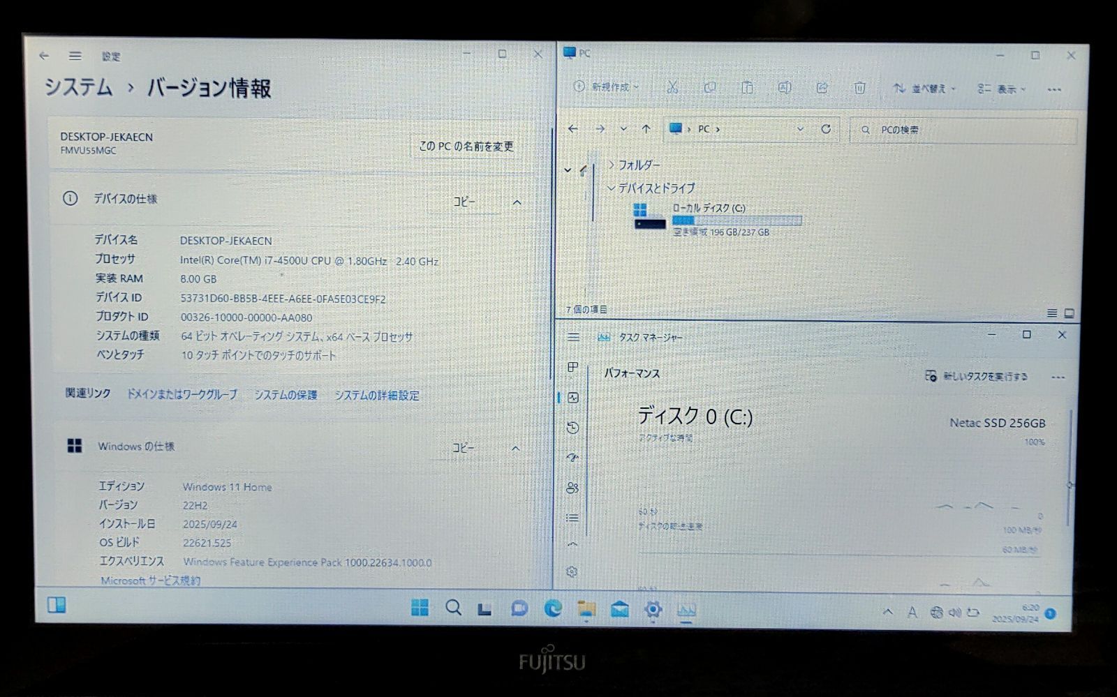 ・OS:Windows 11 Home 64bit(ライセンス認証済み)