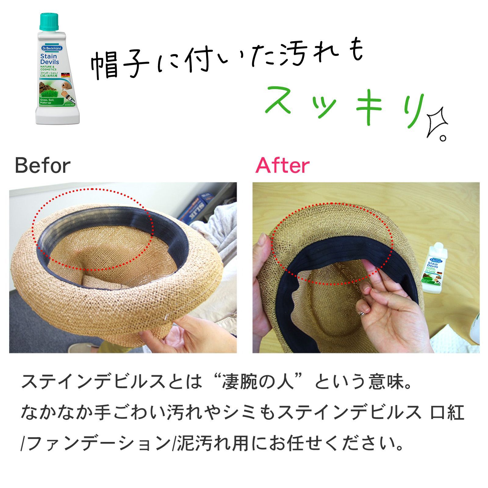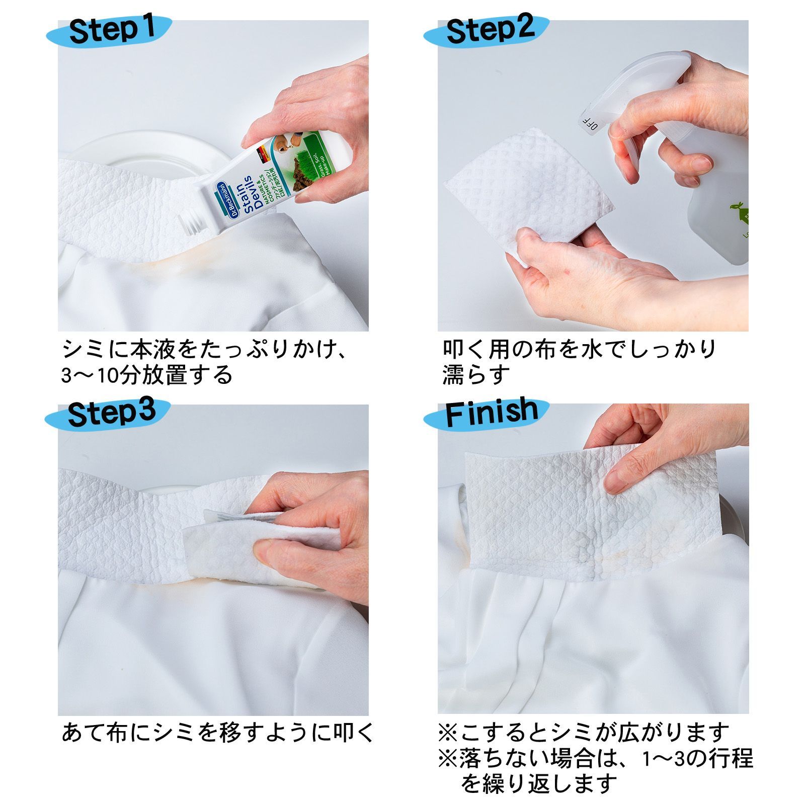 口紅やファンデーション、泥汚れ、花粉などの落ちにくいシミに特化したシミとり剤「ステインデビルス4」。