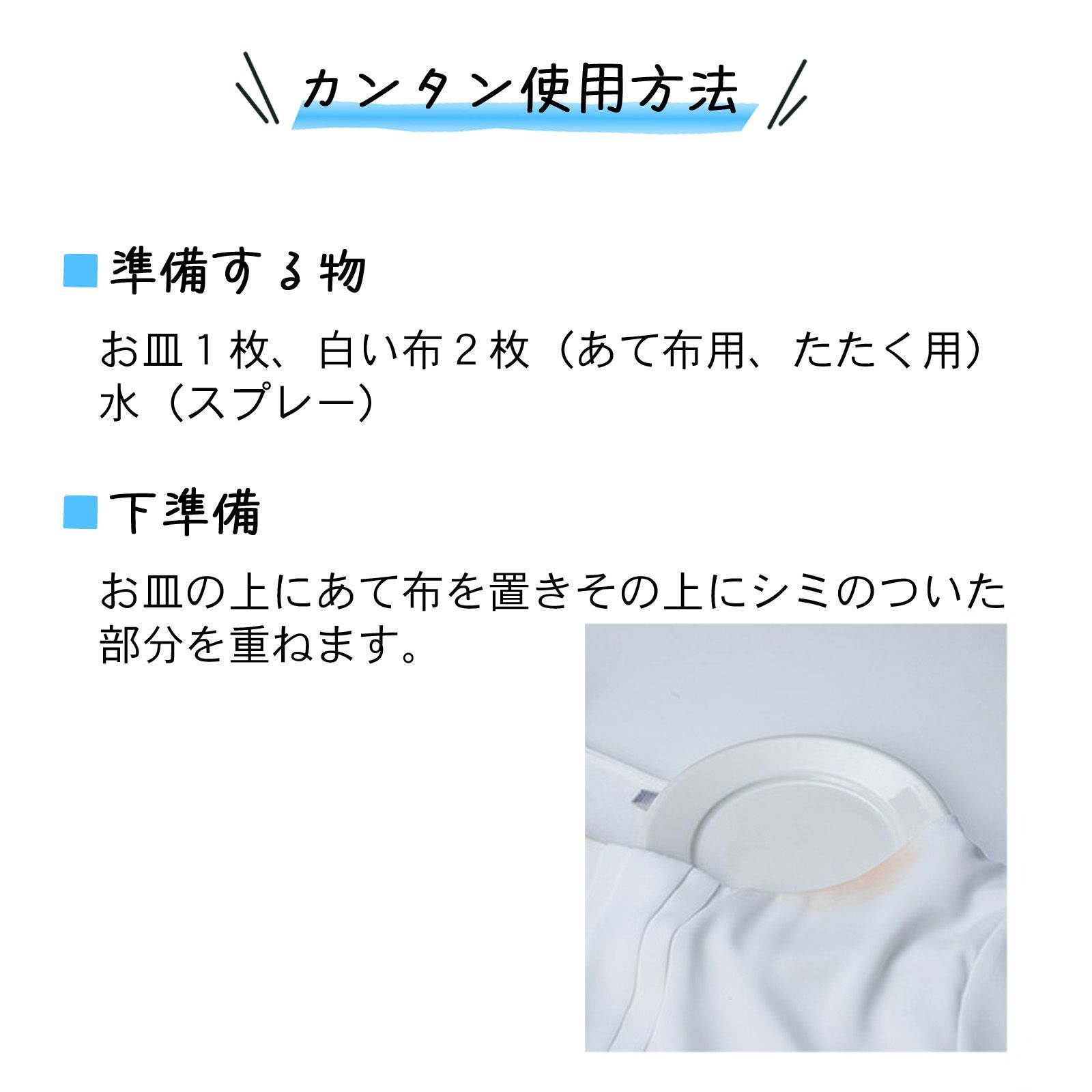 2 シミ部分に本製品を適量塗布し、少し置いてから洗い流します。