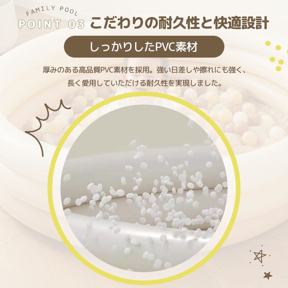 お子様の笑顔と、ご家族の憩いの時間を、ご自宅にお届けします。この充気式プールが、ご家族の毎日に、新しい楽しみと安心をプラスします。