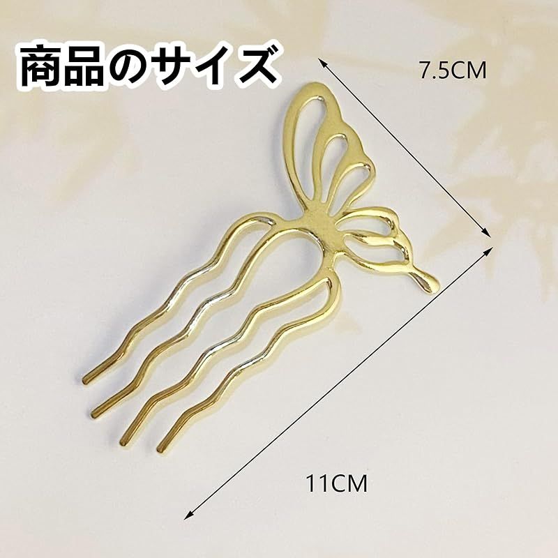 【商品のサイズ】長さ:11 cm、幅:7.5 cm、数量:4個セット。バッグに入れて簡単に持ち運ぶことができます。夜会巻きや、ハーフアップしたヘアにさっとコームを差し込むだけで、洗練された印象のヘアアレンジができます。