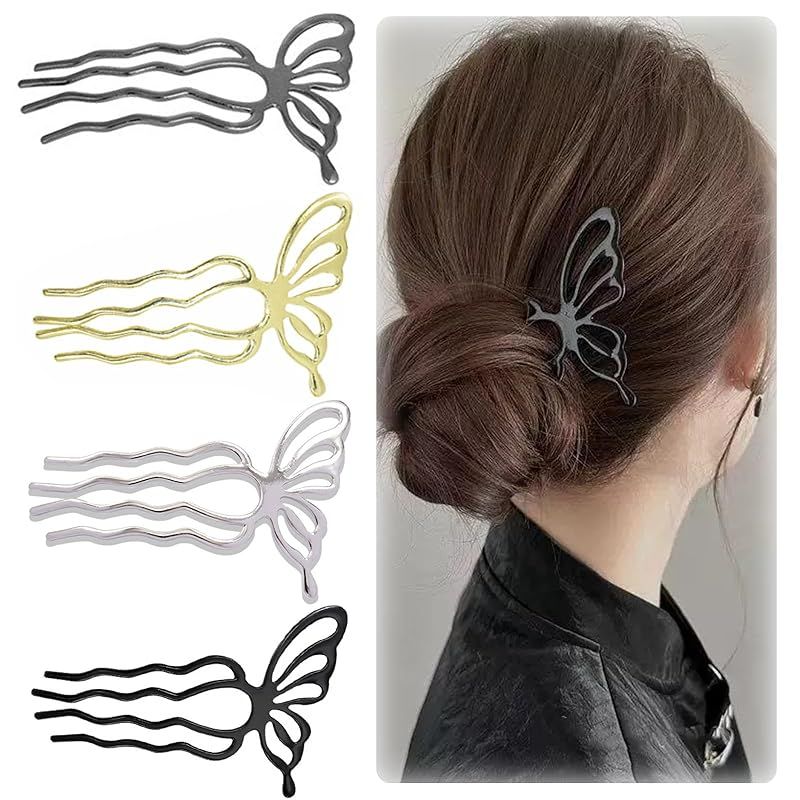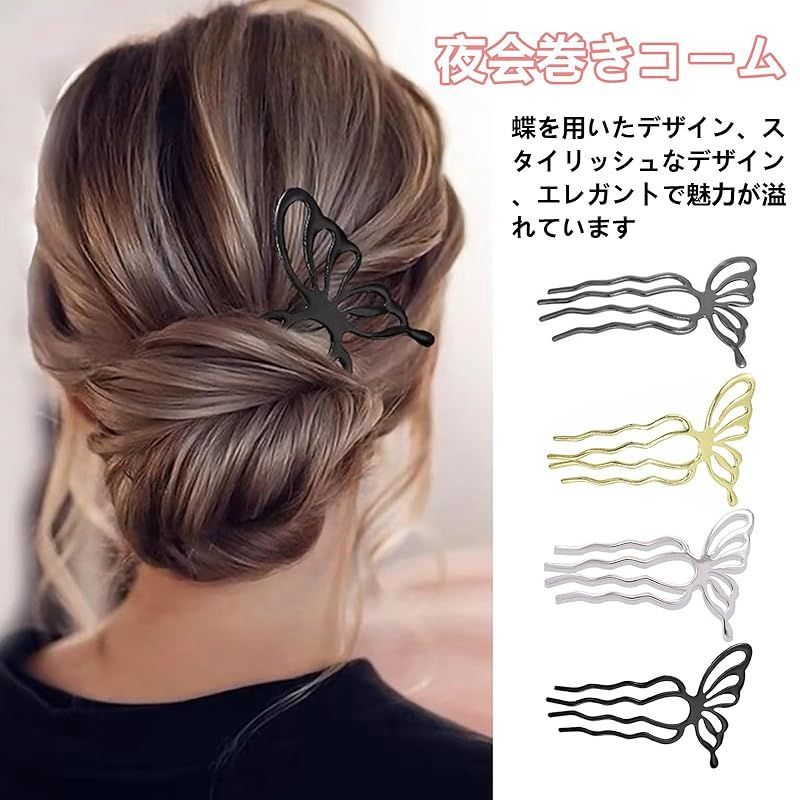 商品名:YANHUILAY 夜会巻きコーム【4個セット】蝶 ヘアコーム 夜会巻き 髪飾り インナーヘアアクセ 髪留め おしゃれ ヘアアクセサリー 盛り髪 お団子 簡単 まとめ髪 ヘアアレンジ 和装 普段使い 結婚式 卒業式 入学式 宴会 成人式
