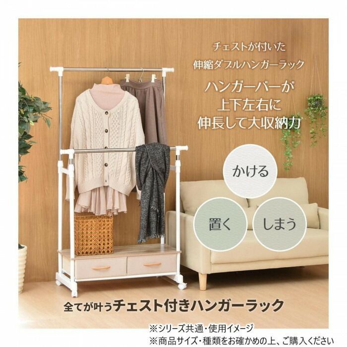 チェストが付いたダブルハンガーラック。上下左右に伸長するから大容量の収納力がございます。