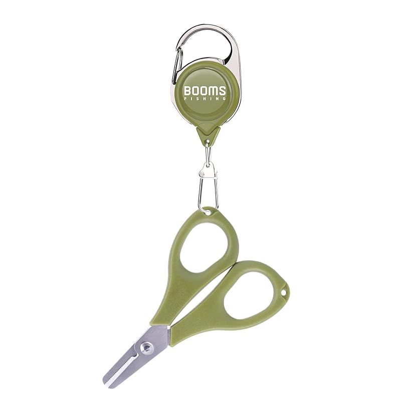 商品名:Booms Fishing S01 PEラインカッター 釣り 携帯ミ二ハサミ (S01緑 ピンオンリール付き)