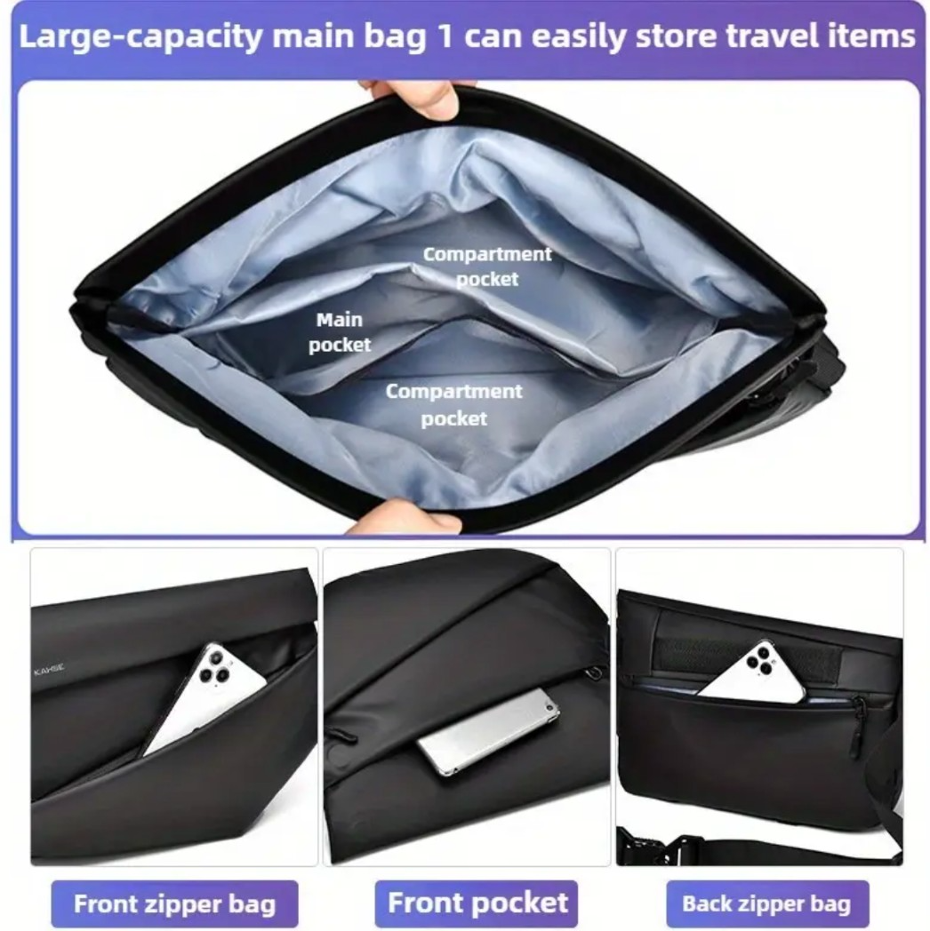 メインコンパートメントはベルクロで閉じて、折って、マグネットクロージャーで留める方式です。