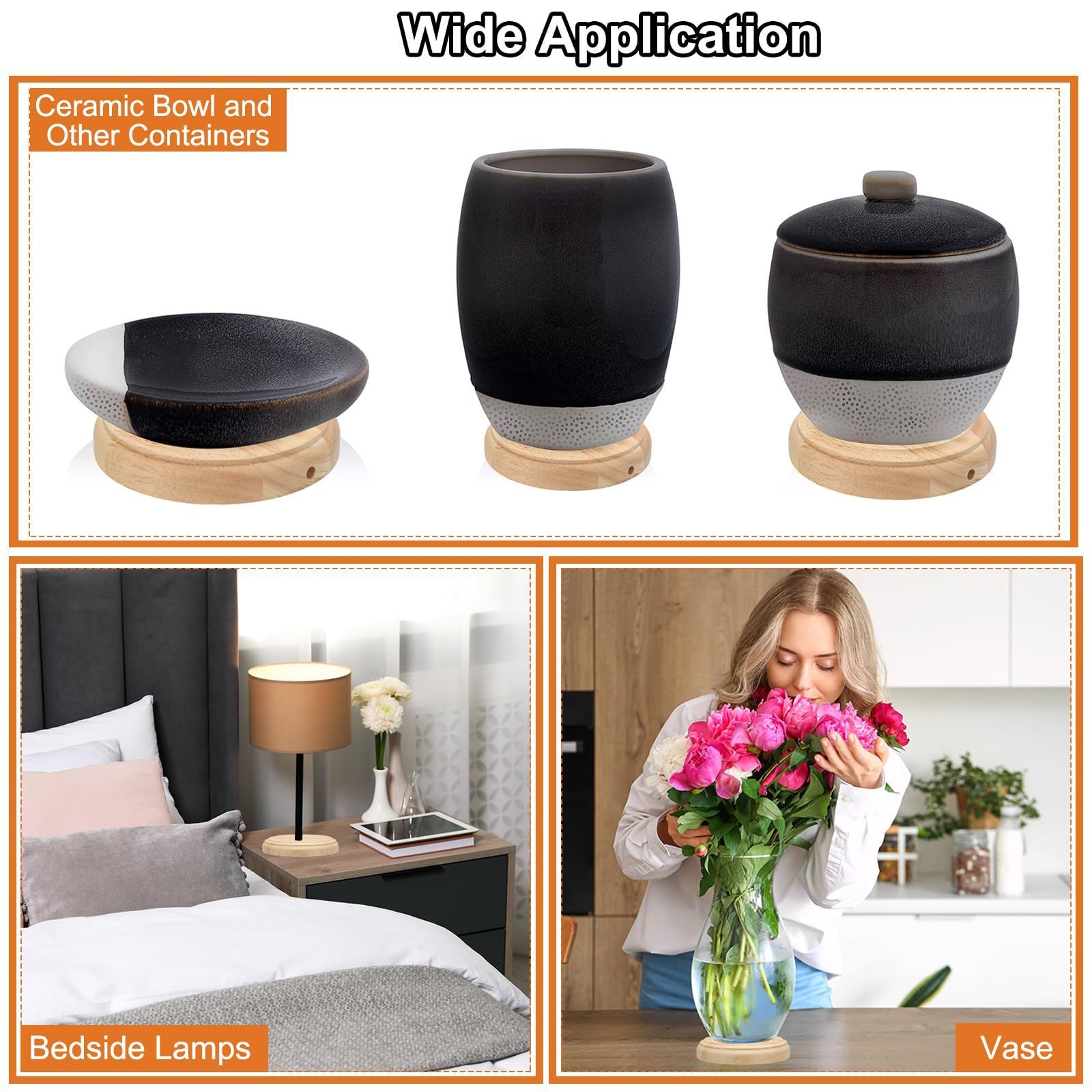 用途: この木製ランプベースは、丸いソリッド木製ベースで、中央の穴と側面の穴が特徴です。これらはデスクランプ、テーブルランプの底部で広く使用されています。また、花瓶のベース、アートデコレーション、DIYプロジェクトにも使用できます。