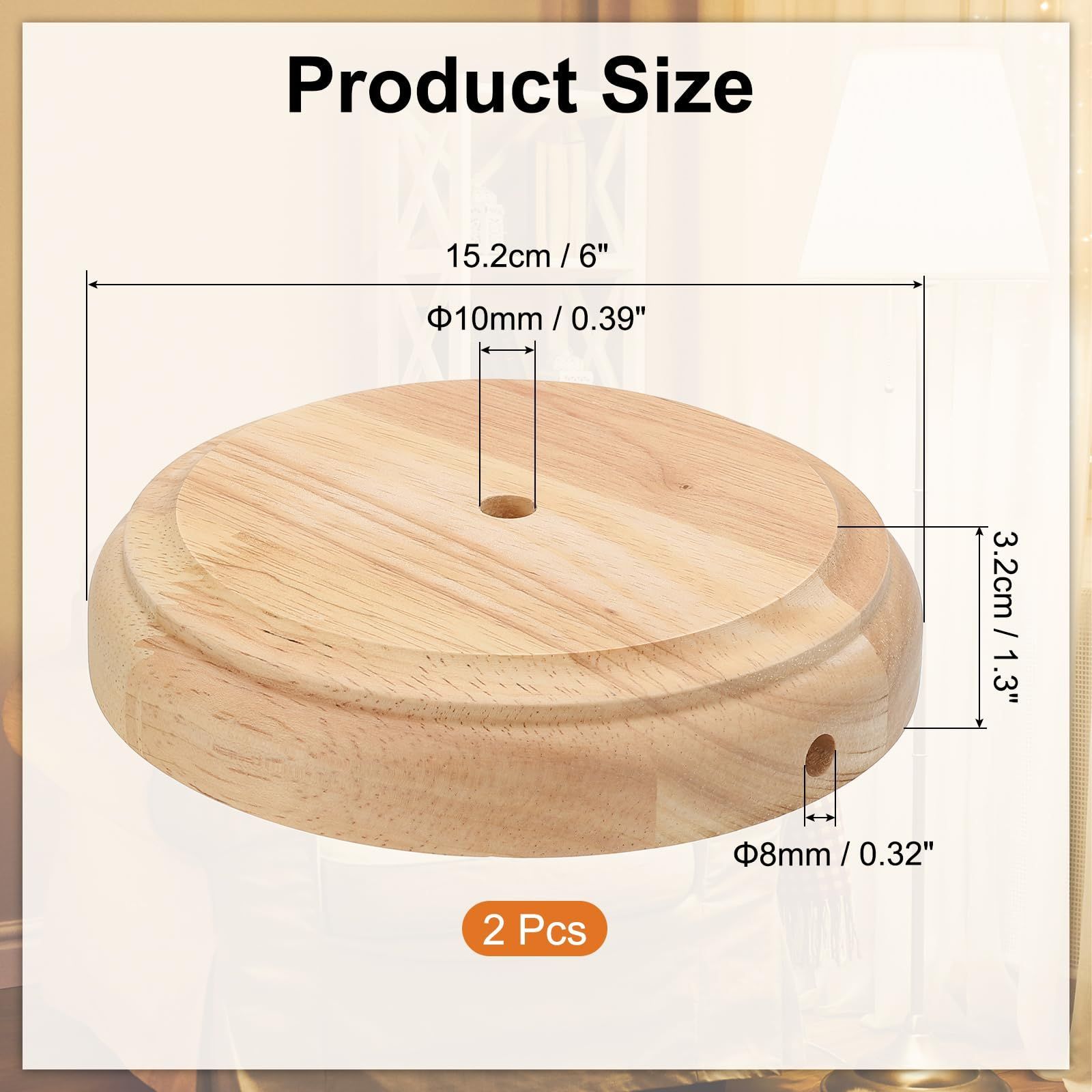 仕様: 素材: 木材; 直径: 15.2cm / 6; 高さ: 3.2cm / 1.3; 中央の穴の直径: 10mm / 0.39; 側面の穴の直径: 8mm / 0.32; パッケージ内容: 2 x 丸いベース