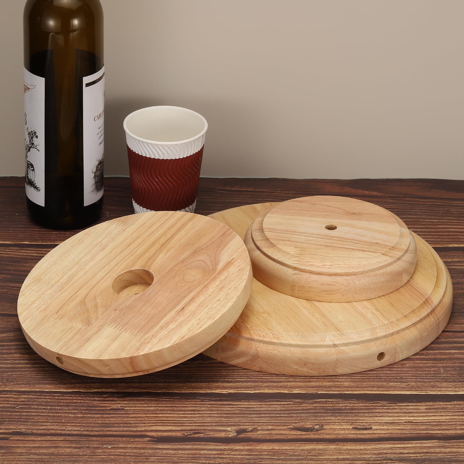 この木製ランプベースは、丸いソリッド木製ベースで、中央の穴と側面の穴が特徴です。これらはデスクランプ、テーブルランプの底部で広く使用されています。また、花瓶のベース、アートデコレーション、DIYプロジェクトにも使用できます。