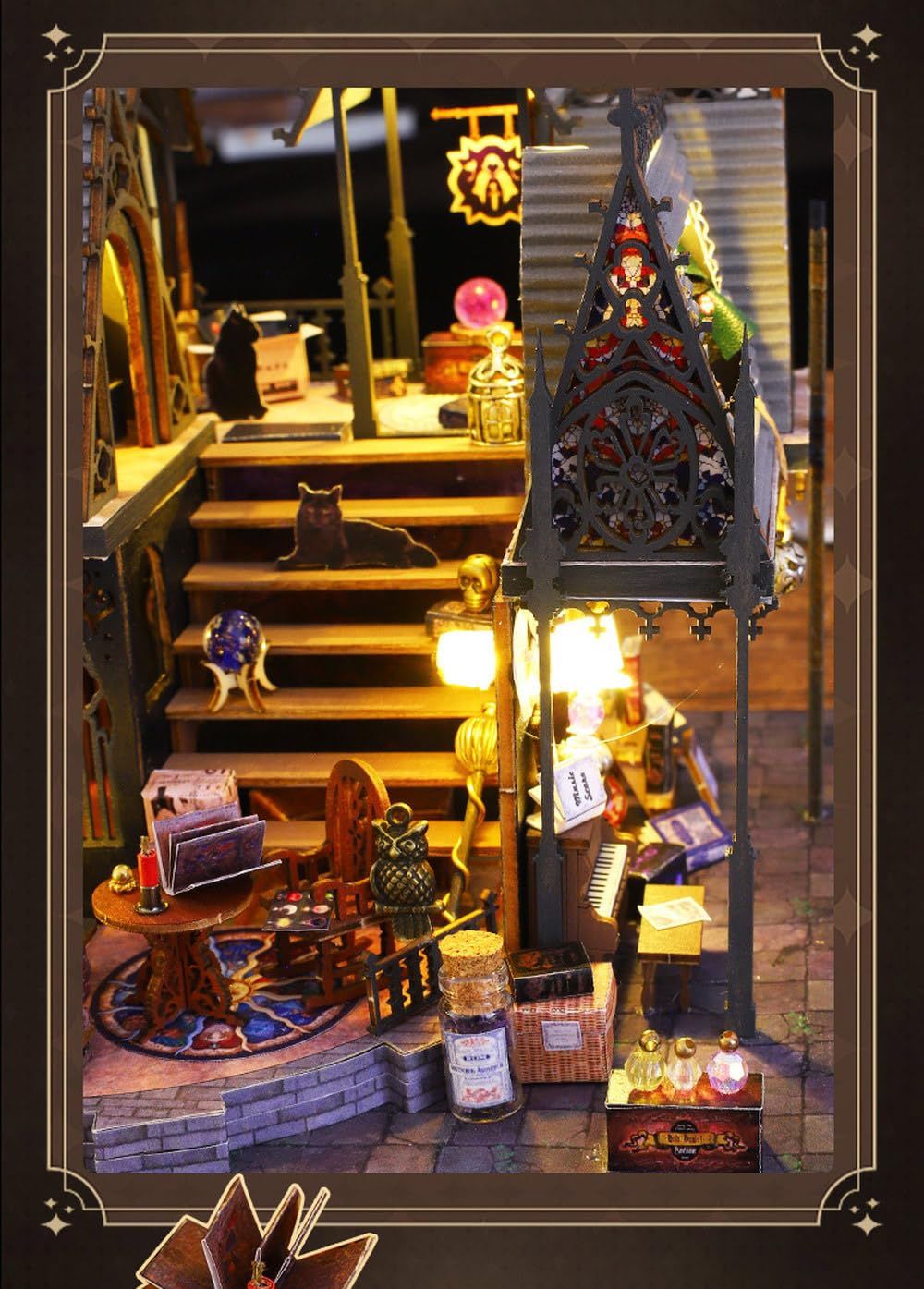 moin moin ドールハウス ミニチュア 手作りキット セット 1/24 スケール 【 英語説明書 】 マジック キャッスル ショップ 魔法 城 猫 | Ledライト + アクリルケース + オルゴール 2310dh404