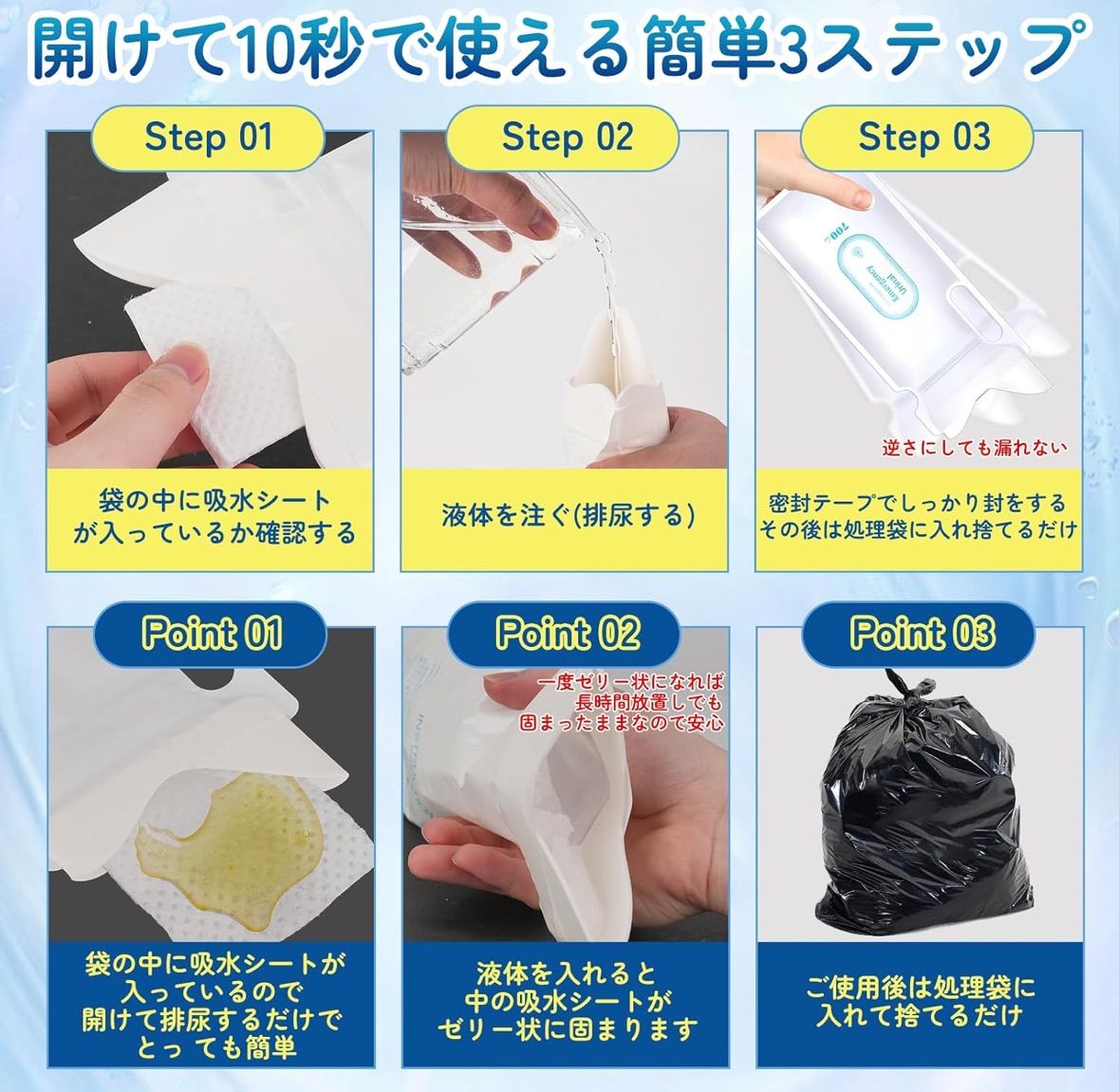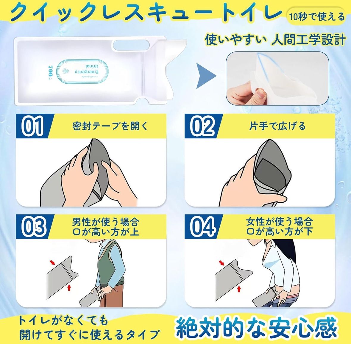 簡易トイレ 携帯トイレ 除菌 消臭 非常用 トイレ 渋滞 介護 防災グッズ 登山 災害 緊急 男女兼用 700cc (4回分)